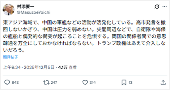 现在还搞这种政治冒险,高市显然是进错了时空,搞错了对象。事实是,高市的战略试探不仅遭到国际社会的广泛谴责,连日本国内也不乏批评质疑之声。至于高市的所谓高支持率,说白了,不过是因为其戏剧化的政治风格契合当下的媒体叙事特征,与真实民意有一定偏差。 可以肯定,日本社会更真切感受到高市战略冒险的代价之日,就是其支持率出现拐点之时。 台湾问题不是日本政治冒险的筹码,高市打“台湾牌”的政治冒险注定会落空。对此,需要用实际行动给日美做更多提醒。 12月1日,高市在东京举行的国际投资会议上引用动漫《进击的巨人》主角艾伦·耶格尔的台词称“都给我闭嘴吧,把钱都投到我这儿来!”,此举被群嘲是没有分寸。 其实,或许高市更应该记的是艾伦·耶格尔的另一句台词,“这是我一贯的主张,我认为最有效的管教就是疼痛”。只要在涉台问题上继续翻腾浊浪,那么就该受到教训。在这方面,没有什么台阶或缓冲空间作预留。 撰稿 / 徐立凡(专栏作家) 编辑 / 马小龙