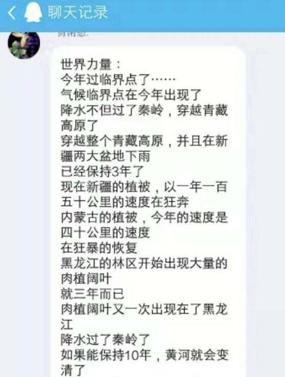 (二) 探讨气候变化,不是这篇文章的主旨。 但一个直觉,这是一件影响深远的大事,不仅仅影响中国,还必然影响世界。 几点粗浅看法吧: 第一,西北将不是原来的西北。 水是生命之源,缺水是西北不少地区最大的难题。因为缺水,生态不宜居,发展经济也困难。 但生态的改变,显然将对西北带来积极影响。简单地说,荒山将更容易变绿,甚至都不需要人为去种树种草;庄稼收成将明显增加,极大增加当地农民的收入;沙漠戈壁,未必一直就会是沙漠戈壁。 想一想都让人激动,大西北有着广袤的土地,但可惜很多都是沙漠、戈壁、荒山,如果有一天真变绿色了,变得像东北那样了,那将是怎样的场景。 这当然有空想的成分,但也不要怀疑大自然的伟力。这不是一年两年的变化,放在百年乃至更长的时间轴里,有什么变化不可能呢? 到那时,西北还是原来的西北吗?还会有孔雀东南飞? 第二,西北更北,也不再是苦寒之地。 从寒冷、干旱,变得湿润、温暖,变化的不仅仅只有中国大西北,还有整个北半球的苦寒之地。 大片的荒原、戈壁乃至沙漠,将可能转化成绿地乃至良田,这将给未来人类带来多大的福音。从这个角度看,俄罗斯的远东,蕴藏着巨大的发展机遇。 与大西北变暖变湿相一致的,其实是全球气候的变暖。正是因为气候变暖,北极冰川正在融化,这将使得北极航道变成可能。以前的冰山之地,正在成为未来贸易的黄金水道。 谁掌握了贸易通道,谁就在未来地缘政治博弈中占据主动。所以,最近几年,围绕着北极航道,我们可以看到,美国、加拿大、俄罗斯等国家的出击态势。 特朗普心心念念想买格陵兰岛,当丹麦政府婉拒后甚至一怒之下拒绝访问丹麦,绝不仅仅只看重格陵兰的丰富矿产资源。特朗普不相信气候变化,但并不妨碍他未雨绸缪乃至采取非常手段。 有一种说法,中国古代边患最严重的时候,正是北方气候极端的时候,游牧民族第一选择,就是向南扩张掠夺求得生存。这改变了中国历史,也改变了世界历史。 大西北正重新绿起来,也将改变中国历史,改变世界历史。 第三,这是一个相当长期的历史,也是相当长期的博弈。 新华社的报道中,有这样一段话: 中国科学院西北生态环境资源研究院副研究员李宗省认为,气候变化为西北带来新机遇,但西北干旱的本底环境不会改变,应协调好可持续发展与水资源短缺的关系,尽可能满足生态用水需求,以应对新挑战。 确实,这是一个相当长期的过程,既不能视而不见,但也不能盲目乐观。但这也意味着,这将是一个相当长期的博弈。 更要看到,气候变化确实也是双刃剑。 新华社报道就说,随着大西北的变暖变湿,极端天气事件也在增加。 “随着气候变暖,暴雨山洪增多,且分散性、突发性显著,造成的灾害严重。目前亟待提高灾害防范减灾意识。”张强说。 不由想起了两句话。 一句话是著名的“两山论”:我们既要绿水青山,也要金山银山。宁要绿水青山,不要金山银山。绿水青山就是金山银山! 想一想,未来的大西北,如果都是绿水青山,如果生态得到彻底改善和保护,那将是怎样的场景! 另一句就是恩格斯的那个著名论断:我们不要过分陶醉于我们人类对自然界的胜利,对于每一次这样的胜利,自然界都对我们进行报复。 在大自然的伟力前,人类还是太渺小,更要有所敬畏。但大自然也是慷慨的,必将回报那些努力的人们。