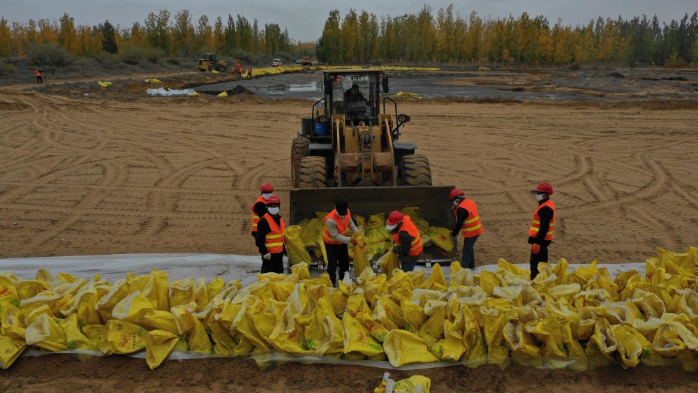 腾格里沙漠20天清出“黑液”4万吨 污染物覆盖处寸草不生