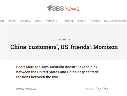 《纽约时报》认为,美国不再是世界经济中心,全球的美国长期盟友正在为此谋划。事实证明,纯粹的经济地理(economic geography)逻辑比传统联盟(historical alliances)更为重要。 同时,在韩国、日本和德国等许多与美国有深厚经济联系的国家中,上述紧张关系表现明显。 但其中澳大利亚尤甚,该国长期是美国最亲密的盟友之一,如今发现自己被其最大出口市场——中国,拉向了反方向。 文章分析称,美澳两国的文化情结深厚,其军队曾在第二次世界大战、阿富汗和伊拉克“并肩作战”,两国情报机构还共享了一些藏得最深的秘密。 但看看“冰冷”的澳元,现在,澳大利亚商界和政界领袖把中美这两个世界最大经济体,视为了同等重要的合作伙伴。 “我们不能和美国一样,以‘中国是战略竞争对手’为前提” 在定于5月18日举行的联邦选举中,澳大利亚两大政党都呼吁采取一种平衡的外交政策,以维护与美国的长期国家安全联盟,同时也寻求发展中澳关系。 两党领袖都没有采用特朗普那种好战的反华言论,也没有试图利用关税迫使中国“屈服”于澳大利亚的要求。 此外,由总理莫里森(Scott Morrison)领导的澳大利亚现任政府,一直寻求与中美保持密切联系。澳大利亚还通过了一项法律,试图减少外国对澳大利亚政治的影响,并承诺增加国防和网络安全方面的支出。 《纽约时报》指出,未产生激烈辩论表明,人们普遍认为,澳大利亚与中国的经济关系非常重要,不能搞砸。 悉尼智库洛伊研究所(Lowy Institute)高级研究员理查德•麦格雷戈(Richard McGregor)则评论称,竞选期间的这种寂静“几近怪异”,“在这个问题上,两党都没有看到任何压倒性的党派优势。两党都知道,在激烈论战中抛出的言论,可能会增加未来与中国打交道的难度。” “我们的利益与美国不同,”前澳大利亚驻华大使芮捷锐(Geoff Raby)受访时说,他建议澳企同时与中美做生意。“这并不意味着我们不能与美国建立亲密、友好的关系。但我们不能和美国一样,采用以‘中国为战略竞争对手’为前提的政策。” 逐渐被中国纳入经济轨道,澳大利亚的“明智之举”是…… 实质上,澳大利亚试图成为一个与两个超级大国都保持良好关系的中型国家,一方面相信美国是其国家安全事务的盟友,一方面也知道,澳大利亚的当前及未来经济都与中国紧密相关。2015年,中澳已正式签署自由贸易协定。 中国的庞大人口和快速发展,将不可避免地把更多国家纳入其经济轨道。这种强大的吸引力也导致了美国近期采取的举措——特朗普政府试图破坏美国人自己帮助创建的、用以指导全球经济体系的机构,不但对亲密盟友加征钢铝关税,退出原本旨在“抗衡”中国的《跨太平洋伙伴关系协定》(TPP),还采取措施削弱世界贸易组织的执行能力。 在许多较小国家看来,想要在全球商业中获得公平待遇,世贸组织扮演着至关重要的角色。 《纽约时报》重复说道,实际上,自中国上世纪开放以来,其人口和地理位置使得澳大利亚不可避免地向中国经济轨道转移。 澳大利亚的葡萄酒产业曾经几乎完全专注于国内市场,然后扩张至出口英美。但在过去10年里,三股力量合力使中国成为澳大利亚最大的葡萄酒出口市场: 中国中产阶级人数大幅增长;2015年两国签署的贸易协定降低了关税;一场大规模的营销活动又令许多中国消费者青睐澳大利亚品牌。 澳大利亚葡萄及葡萄酒协会首席执行官托尼•巴塔林(Tony Battaglene)表示:“我们不希望任何政党认为我们站队了。这是微妙的政治问题,我们不想卷入其中。” 但过去几年,世界贸易体系出现分裂风险。 “澳企或澳政府无需迅速决定坚定地只与中国或美国结盟,并把另一方排除在外,”金杜律师事务所合伙人艾德里安·珀金斯(Adrian Perkins)对此建议道。“明智的做法是保留所有选择的可能性,无需排除。” 美媒进一步解读认为,对澳大利亚经济和地缘政治而言,这种明智之举意味着,曾经特殊的美澳关系,已不再那么特殊。