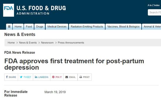 在这样的背景下,当地时间3月19日,美国食品药品监督管理局(FDA)批准了SAGE Therapeutics公司开发的Zulresso(brexanolone,别孕烯醇酮)上市,用于产后抑郁症的治疗。