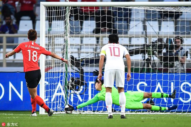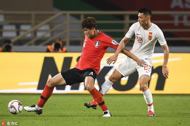 北京时间1月16日晚,2019亚洲杯小组赛C组第三轮赛事展开,中国队对阵韩国队,上半场中国队0-1落后。第13分钟,孙兴慜禁区内突破造成石柯犯规,韩国队获得点球,黄义助操刀破门;中国队有效冲击不多,金敬道一次前插攻门形成威胁,但将球打高。 小组赛前两战中国队2-1吉尔吉斯斯坦、3-0菲律宾,韩国队1-0菲律宾、1-0吉尔吉斯斯坦,中韩两队均提前获得出线权,本场交锋事关小组头名归属。中国队阵容有所调整,肩伤在身的武磊与黄牌在身的冯潇霆均轮换休整,郜林、蒿俊闵等人也担任替补;小组首战担任首发的金敬道与张呈栋重回首发,于大宝突前。韩国队安排火线归队的头号球星孙兴慜以队长身份首发出战。 中国队由张呈栋担任左边后卫,刘洋前提担任左边前卫。韩国队在开局阶段形成控球优势,中国队在中前场展开高位逼抢。第3分钟,韩国队快速斜传中国队防线身后,黄喜灿已形成禁区内趟球前插,张呈栋及时追防卡位将球保护给出击的颜骏凌。此后中国队也由金敬道斜传打到韩国队防线身后,后点前插的刘洋趟球稍大被对手拦截。 第7分钟,颜骏凌开大脚后韩国队在中前场形成头球前顶,越位位置上的孙兴慜没有触球但起到掩护作用,黄义助前插后面对门将攻门被颜骏凌封堵,黄义助禁区左侧再度起脚又被颜骏凌挡下。此后角球冲击中金玟哉头球攻门在赵旭日干扰下偏出。双方拉开阵型对峙,韩国队进攻中获得的空档较多,场上错进错出也较多。 第13分钟,韩国队右路将球扫入中国队禁区,孙兴慜在郑智拼抢下形成控球,其向中路趟球时被石柯绊倒,主裁判判定点球;黄义助低射球门下角,颜骏凌触到皮球但未能阻止皮球入网,韩国队1-0领先。 随着阵型前提中国队前场控球冲击增多,在一次角球冲击在韩国队门前制造混乱后,中国队在第19分钟形成威胁攻势:赵旭日斜传韩国队禁区右侧,快速前插的金敬道高难度停球后顺势攻门,在追防球员干扰下将球打高。此后赵旭日因前场拼抢犯规领到黄牌,紧接着张呈栋中场争顶又被判定犯规,也领到黄牌。韩国队趁乱形成快攻,黄喜灿禁区外抽射被颜骏凌挡出。