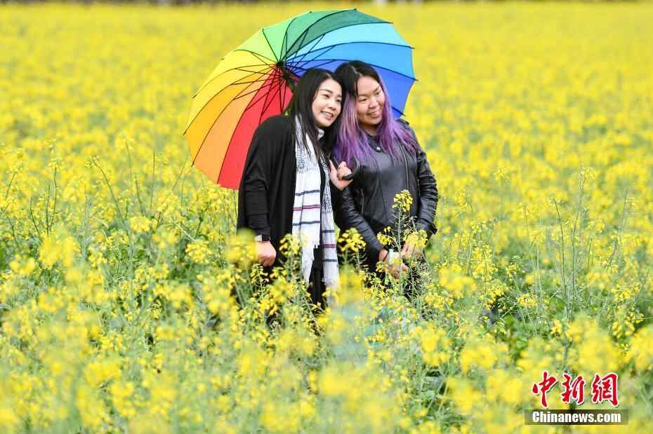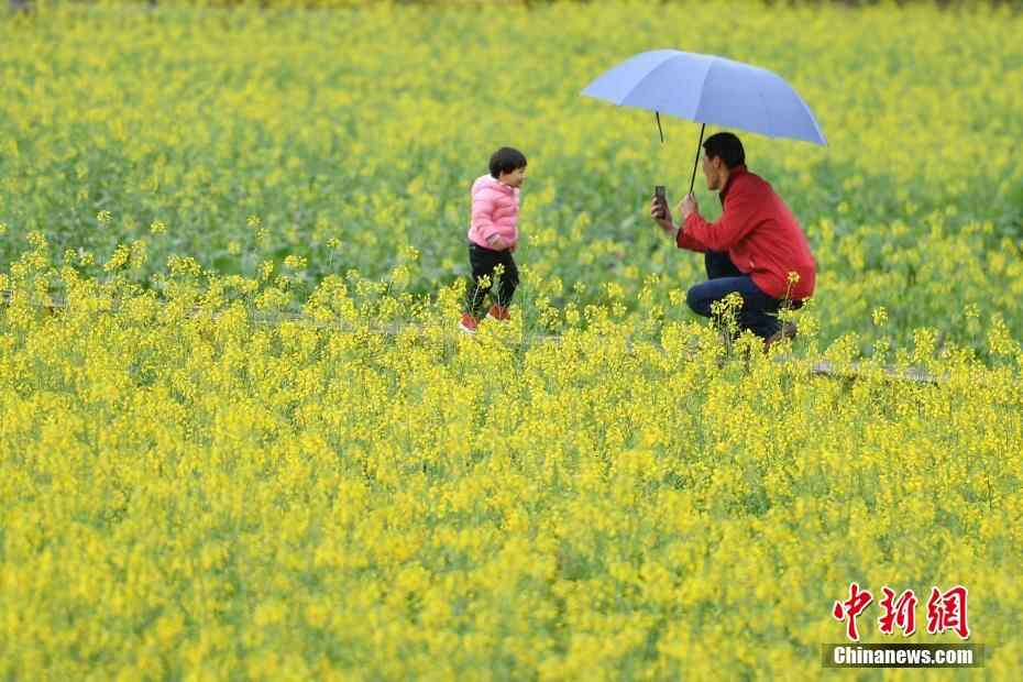 2019年2月23日,广州市花都区赤坭镇竹洞村,村里成片的黄花风铃木已然怒放,不管是村道路旁,还是池塘四周,都披着一层金黄色的外衣。不少开车经过的游客都被这美景所吸引,下车赏花拍花。广报全媒体记者杨耀烨 摄