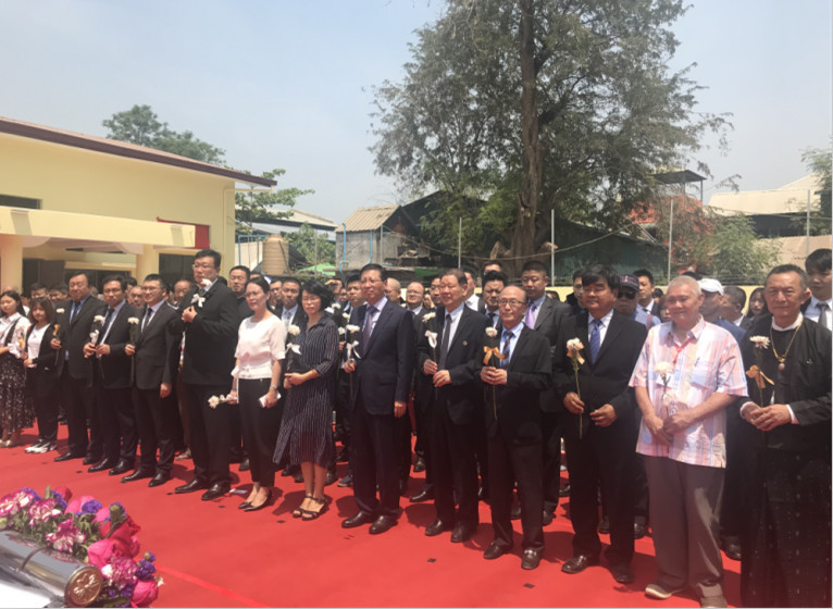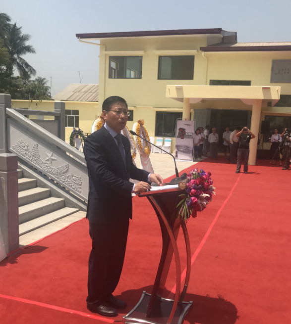 【环球时报-环球网驻缅甸特约记者 辛木报道】2019年4月4日,在中华民族传统节日——清明节即将到来之际,中国驻缅甸大使馆、在缅中国远征军后裔、华人华侨、中资企业代表与中国留学生等一行,驱车240余公里赶赴东吁(Taungoo,也称同古)为修葺一新的中国远征军纪念碑和纪念馆举行揭幕和启用仪式。 戴安澜之子戴澄东致辞 上午11时许仪式开始,中国驻缅甸大使洪亮、戴安澜将军之子戴澄东在东吁华侨杨文波、远征军后裔联谊会长谢芳盛、中资企业商会会长刘颖、中国留学生代表张蕴捷及现场近百位参会人员的共同见证之下为新碑揭下红幕。 洪亮大使致辞 洪亮在致辞中表示,每逢清明,我们都齐聚东吁,在中国远征军纪念碑前祭扫先烈。根据远征军后裔和当地华人华侨的建议,中国大使馆重修了纪念碑和纪念馆,并对旧碑主体进行了妥善保存,新碑面朝北方,表明烈士们永远心向祖国、心系故土。 洪亮还说,77年前,为了保卫中国抗战大后方,为了支持世界反法西斯同盟的正义事业,中国远征军将士们毅然开赴缅甸战场,英勇抗击日本侵略者。就在我们脚下的这片土地,戴安澜将军率领200师的壮士,同四倍于己的日军激战十余天,歼敌5000余人,取得了远征军入缅作战的首次胜利。同古保卫战振奋人心,彪炳史册。在入缅作战的3年多时间里,40万中国远征军将士,付出了20万人伤亡的代价,最终赢得了辉煌的胜利,为中国抗日战争的胜利和世界反法西斯战争的胜利做出了巨大的贡献。 戴澄东在稍后的致辞中说,能参加今天的活动,心情无比激动。特别是清明时节祭祀,子孙儿女更思亲。77年前,中国远征军在世界反法西斯统一战线(同盟)的部署下,在同古这个地方同日本军国主义军队展开了激烈的对抗,戴安澜将军与200师的将士们,在孤军深入的情况下,抱定为国战死,逝去光荣的大无畏精神,同仇敌忾坚守同古,给日军第55师团以重创,取得了第一次入缅作战的光辉战绩和巨大胜利。今天我们在这里祭奠先烈,就是要让我们牢记他们的不朽功勋,就是要感恩他们为缔造和平的英雄气概。敬爱的父亲戴安澜将军、敬爱的中国远征军先烈先辈们,祝愿你们在天之灵安好,人民永远不会忘记你们! 与会人员默哀 致辞结束后,参会人员排队逐一瞻仰远征军纪念碑并敬献菊花,然后参观纪念碑浮雕和纪念馆中的中国远征军事迹陈列展。 东吁在缅甸历史上久负盛名。根据史料记载,公元1531年,年仅15岁的莽瑞体(缅语名音译德彬瑞蒂)在东吁继位,从此缅甸历史上最强盛的王朝由此创建,史称东吁王朝。东吁的地理位置也十分重要,它处在仰光和曼德勒之间,滇缅公路从这里穿过,是当年日军攻占仰光后北上的必经之路。据中国驻缅大使馆于边疆参赞介绍,1951年远征军后裔和华人华侨曾在东吁修建一座远征军纪念碑,1997年迁到现址。由于日晒雨淋,年久失修,出现了不少裂痕。现在的纪念碑于2019年3月建成,整体由花岗岩雕刻,高9.7米,碑后还新增了远征军主题浮雕。