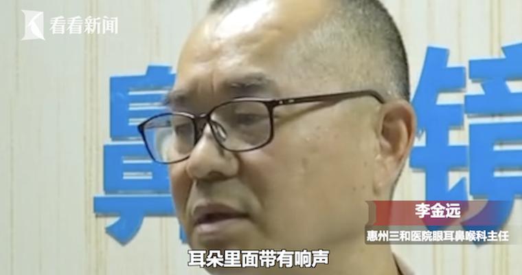 凌晨4点40分,惠州惠阳某医院急诊科突然冲进一名神色慌张的男子。 惠州三和医院眼耳鼻喉科主任李金远:“病人当时情绪比较焦虑,神色紧张,带有恐惧感,他说耳朵里面带有响声,还伴有一些疼痛感” 看到患者耳朵里的状况,值班医生的寒毛都竖了起来。