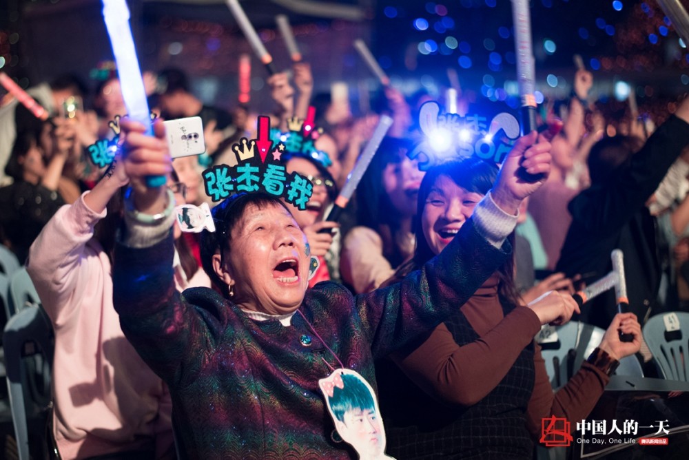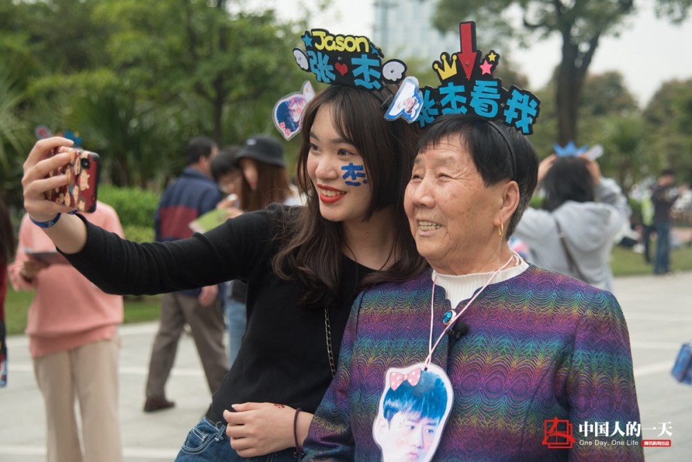 2019年3月12日,外孙女帮黄奶奶发出了一条“表白”张杰的微博,引发数百万网友的关注。这条微博是黄奶奶口述的,一直想见偶像的她没想到,演唱会居然会开在自己家门口,黄奶奶认为“这是上天赐予的最好的缘分”,外孙女也费了很大力气为她抢票成功。当天演唱会现场,张杰还与黄奶奶互动,称看到了这条微博,希望黄奶奶永远年轻漂亮。 黄奶奶拿出家里的老相册展示自己年轻时的照片,她曾在单位文工团工作,期间喜欢上舞蹈和歌唱,79岁的黄奶奶新疆舞跳得有模有样。黄奶奶说:“年轻时候并无崇拜的偶像,想不到年纪大了竟然喜欢上小张杰,我自己也成了名副其实的奶奶粉”。 3月16日,张杰2019【未·LIVE】佛山站演唱会在广州佛山世纪莲体育场举行,第一次见偶像,黄奶奶既兴奋又紧张,她说如果真正看到张杰,不知道如何表达自己的心情,希望自己能静静地看完整场演唱会。 出发前往演唱会现场前,女儿为黄奶奶带上耳环,还在嘴唇上涂上淡淡的口红,“因为妈妈要见喜欢了12年的小张杰了,总要为她精心打扮下。”黄奶奶女儿笑着说。 春节期间,黄奶奶做了肝囊肿手术,如今身体初愈,女儿也担心演唱会现场她的身体状态。演唱会前夕,女儿带着黄奶奶来到楼下的小餐馆,点了一碗清汤面条和一盘饺子。吃完饭,女儿开车载黄奶奶前往演唱会现场。 来到广州佛山世纪莲体育场外围,女儿带着黄奶奶购买张杰的周边商品。黄奶奶挑选了一个写有“张杰看我”的可爱发光发卡戴在头上,选了自己最喜欢的两张海报,还有一块印着张杰嘟嘴表情包的胸牌。 演唱会开始前,黄奶奶的出现引来了其他粉丝好奇又羡慕的目光,她们惊讶于在张杰粉丝群体中竟然有黄奶奶这样的高龄铁杆粉丝。 在现场,很多“星星”(张杰粉丝昵称)都围绕在“奶奶星”身边,陆续有年轻人上前同黄奶奶自拍合影,黄奶奶有些应接不暇,但还是面带微笑同众多粉丝留影。 检完票,女儿带着黄奶奶提前走进演唱会现场。1小时后,黄奶奶将在现场亲眼看到自己喜欢12年的小张杰。 演唱会倒计时5分钟,现场音乐响起,荧光棒照亮全场。黄奶奶眼睛一刻不停地盯着舞台中央,她挥舞着手中荧光棒等待着偶像的现身。