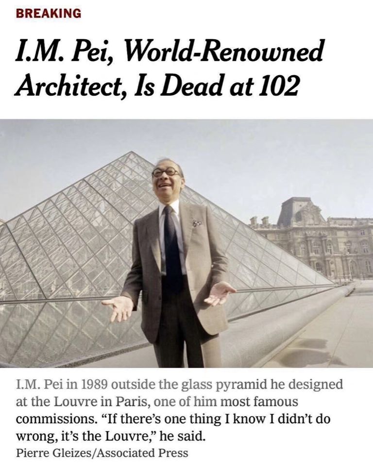 1978年,几乎是美国最重要的公共文化建筑——国家美术馆东馆建成。 当时的美国总统卡特,在东馆的开幕仪式上称,“它不但是华盛顿市和谐而周全的一部分,而且是公众生活与艺术情趣之间日益增强联系的象征”,并称贝聿铭是“不可多得的杰出建筑师”。 贝聿铭以充满激情的几何结构,有力驳斥了现代主义运动已经衰落的论调,成为70年代美国最成功的建筑之一。它奠定了贝聿铭作为世界级建筑大师的地位。 而接下来,承建卢浮宫改建项目,则为贝聿铭赢得世界性的声誉。 时任法国总统密特朗,在看到美国国家美术馆东馆后,毅然决定由贝聿铭担此重任。 高傲的个性令法国人不十分钟意美国设计师。贝聿铭过往的作品,他的中国文化背景,让法国人深信,这位建筑师会带来一件匹配得上卢浮宫的充满文化的建筑。 可是,当贝聿铭提出,用现代建筑材料在卢浮宫的拿破仑庭院内建一座玻璃金字塔,并将其作为卢浮宫正式入口的标志的时候,这个方案在法国引起轩然大波。