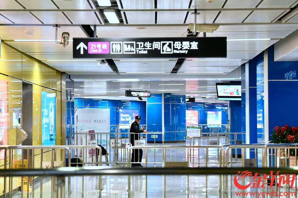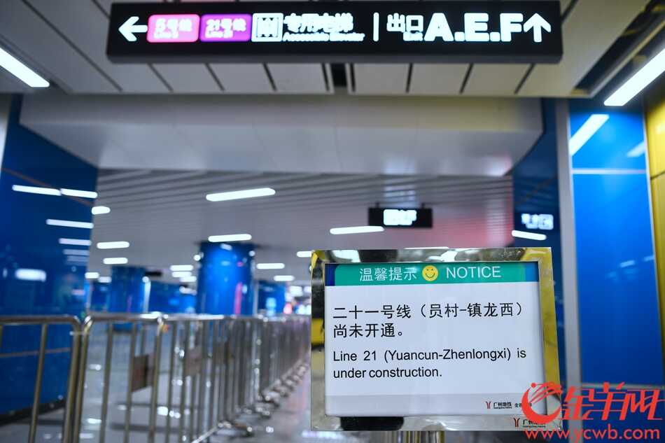 6时02分,在员村地铁站,21号线首趟快车已经抵达,不过由于时间较早,乘客还少。