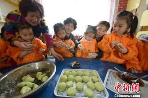 资料图:图为小朋友在老师指导下包馅做青团子。王思哲 摄