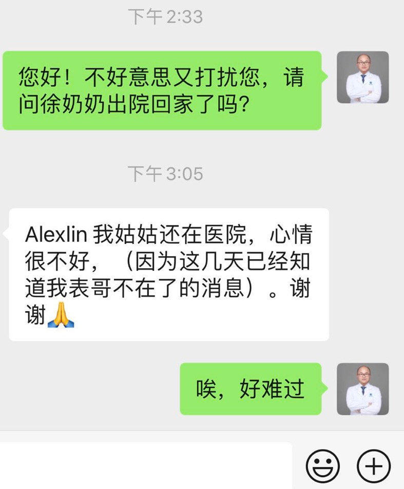 红星新闻对话林鸣 红星新闻:你和徐奶奶怎么相识的? 林鸣:1月25日,我所在的协和医院被征召为定点医院后,便去了成人发热门诊工作。后来,随着火神山医院的建成,被调至急诊120中心,负责将各个医院的新冠肺炎患者转移过去。 当时,我刚到发热门诊不久,大年初九(2月2日)那天我值夜班,有很多人在排队看病,在初十凌晨2点钟左右,轮到了徐奶奶。交流中得知,她没有发烧咳嗽等症状,来医院是因为她儿子被确诊了,而她之前一直有照顾儿子。给她刷就诊卡的时候,我才知道她已经90岁高龄了,当时有问她其他家人呢,但她说家里就她和儿子、女儿三个,一个已经确诊躺在病床上,另一个还在打针。 再后来,就是她在等检查结果的时候,找护士借了纸和笔,写了一段话给她儿子,我现在都还记得“儿子,要挺住,要坚强,战胜病魔。要配合医生治疗,呼吸器不舒服,要忍一忍,以便恢复。如果血压正常,鼻孔吸氧,请求医生。忘记给现金,托医生带上伍佰元,可托人买日常用品。” 红星新闻:有想过徐奶奶的事会引起这么大关注吗? 林鸣:当天被她感动后,我就发了一条微博,本意是想把这种温暖分享给大家,只是没想到等我一觉醒来,这条微博被上万人关注着,无数网友私信我,想要帮助徐奶奶。 感动之余,我让护士帮忙调出徐奶奶的相关信息,然后去问对应病房的同事,但不幸得知,在徐奶奶找我检查的第二天下午5点40分,她儿子就已经抢救无效去世了。 我和同事们商量后决定,暂时保守这个秘密,并联系徐奶奶所在的社区,请他们多多照顾下老人。 再后来,从徐奶奶那里,我知道了她的侄子已经在照顾她了。 我现在每天的工作量很大,加上也不愿意过多打扰他们的生活,所以我都是隔一周问一下老人的侄子,知道徐奶奶安好就行。