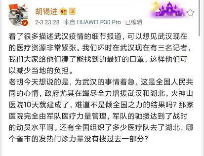 必须告诉大家,全国对武汉的支援绝对没有落后于网上的呼吁。武汉当前处在特殊状态,中央督查组已经进驻了那里,这很罕见,就是为了组织协调全国的支援。由于疫情凶猛,所有工作不可能一步到位,但经过不断克服困难,情况一定会逐渐好转的。 网上的一些报道说了有些发热病人住不进院的情况,非常令人同情。这些报道有助于公众了解当地的实情,我认为起了积极作用。同时我想提醒舆论场,在通过这些报道了解具体画面的同时,一定要同时了解国家在高度动员起来采取行动的大局和全景。 我看到个别自媒体人在讲述这些具体画面时很激动,斥责国家。我愿意理解他们的情绪,但我想不能因为在这场大灾难中有那样的具体画面就否定国家在全力以赴增援武汉的事实,那样的话也是对那么多驰援医疗队和火神山医院日以继夜建设者们的不尊重。