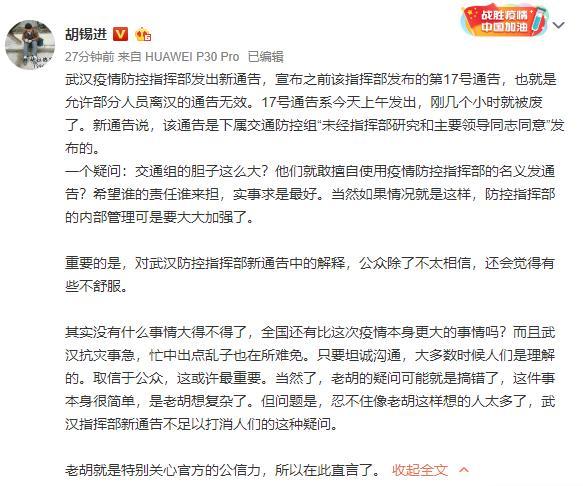湖北紧急通知:报省指挥部审核 政知君注意到,就在2月24日,湖北省新冠肺炎疫情防控指挥部向全省发出紧急通知。 通知强调,各市、州、县要严格落实属地责任,继续严格执行离汉离鄂通道管控措施,守牢管住离汉离鄂道口,坚决做到内防扩散、外防输出。 通知还提到,“要严格请示报告制度,疫情防控期间,各市州指挥部出台涉及离汉离鄂通道管控有关的政策,须提前报省指挥部审核。” 通知称,要加强督促检查,省指挥部督查专班将各地离汉离鄂通道管控措施执行情况作为重点,加大督办检查力度,对有令不行、有禁不止,打折扣、搞变通等问题,严肃追责问责。 2月25日12时03分,“武汉发布”发布了湖北省疫情防控指挥部的一份通告。 通告提到,滞留在鄂外地人员由当地政府及有关方面提供救助服务,“希望滞留在鄂外地人员遵守现住地疫情防控要求,配合做好相关工作,合力打赢疫情防控阻击战。” 应勇赶赴现场督导 政知君注意到,就在2月25日上午,应勇再次到武汉市检查督导离汉离鄂通道管控工作。