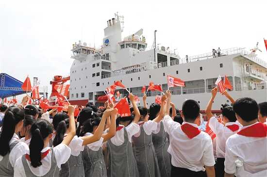 船上生活精彩 餐厅菜式一月不重样 除了科考能力突出,“雪龙2”号的生活配置可谓“麻雀虽小,五脏俱全”。船上生活精彩,有健身房、图书室、小型影院(报告厅)等。 中国第36次南极考察队领队徐世杰告诉记者,船上除了会议室、图书室,还有娱乐休闲场所。“4层有餐厅、6层有健身房”,餐厅菜式一个月不重样。船上还配备了一名船医。船员的住处也是“高标准”的“海景宿舍”,两人间,有床、书桌、衣柜,还有独立卫生间。此外,“长期在海上生活,心情都需要调节”,徐世杰表示,科考期间也会在业余时间组织活动。 在船舱设计上,科考队员不需要房门钥匙,一款腕带式装置就是门卡,并可以记录队员身体状况等相关信息。除此之外,这款装置自带定位系统,可随时明确船员位置。 国家海洋局极地考察办公室主任秦为稼介绍,“雪龙”号是上世纪90年代中期从国外进口的破冰船,原设计是一条运输船,在科考方面先天不足。近年来,随着极地科考任务的增加,“雪龙”号显得力不从心,所以建造了“雪龙2”号。“两条船将相互配合,发挥各自优势,形成双船作业模式,为满足极地生活、科学考察提供了更好的条件”。 “雪龙2”号配备了“雪鹰301”直升机 配备直升机 协助野外考察等任务