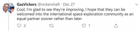 得到两人的回复后,或许是去了解了长五的有关情况,这个英国网友改变了最初的看法。 他回复道:“太好了,很高兴看到中国取得了进步,我希望探索太空的国际团体们,能尽快平等地看待和接纳中国这个合作伙伴。”