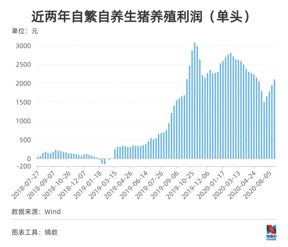 最强猪周期还能持续多久?业内:两年内应该不会亏 未来猪肉价格走势如何?业界议论纷纷。 “在一段时间内,特别是今年,猪肉不会过剩,但是明年和后年猪肉过剩的可能性是存在的。”新希望集团董事长刘永好今年5月曾指出,因为养猪是长周期和高投入产业,因此2020年猪肉相对短缺格局还会持续。 大多数业内人士认为猪肉价格难破前高。“这么高的猪价不可能维持下去,明年猪价可能低一点,后年也可能低一点。”孙双胜分析,现在的猪价可能保持到今年第三季度,但第四季度可能不好说了。 赵金厚认为,今年接下来的猪肉行情将维持短涨长跌的趋势,“长期价格会回到正常。” 国家发改委新闻发言人孟玮此前表示,总体判断,今年下半年猪肉价格有望保持稳步回落的态势,并可能随着季节性和节日性的需求变化而有所波动。有关部门的监测数据显示,能繁母猪存栏量和生猪存栏量比2019年9、10月份出现了较大幅度的回升。新生仔猪量连续多月在增多,预计今年三季度育肥猪的供应将趋于改善。 短涨长跌的猪价预判基于生猪产能和出栏数复苏的预期。一个好消息是,据农业农村部网站通报,5月份能繁母猪存栏环比增长3.9%,连续8个月环比增长,累计增长23.3%。 周齐把能繁母猪视作生猪长期供给的关键指标。赵金厚表示,农业农村部披露的能繁母猪数据是抽样数据,实际的母猪补栏量应比这个数据还要高。 商品猪作为后备留种母猪是能繁母猪产能增加的重要原因。“短期可以做到保供,从为市场提供猪苗的角度,这肯定是有益的。”江腾涛说,理论上不断生下的仔猪可以继续配种,三元母猪、四元母猪、五元母猪……但关键的问题在于,迭代母猪的产殖率、繁殖性能等会受到影响。 迭代后备母猪影响到企业的造肉成本,规模成本亦是工业化猪企的重要比较优势。当猪市利润高,企业对规模养殖的成本弹性尚不敏感。但如果猪市价格某一天“变脸”了呢? 这并非没有可能。高养殖利润叠加鼓励政策支持,本轮猪周期规模养殖场扩产速度比较快。规模生产的供给增加将拉动行业平均利润向下,猪企的预算约束将更看重造肉成本核算——投入每一块钱的边际效用。 这也是江腾涛目前的担心之处——这轮最强猪周期恐步入尾声。 “我就担心出现以前猪周期的恶性循环,大型猪企都在扩产,包括搞房地产、搞钢铁的都想跨界养猪。”江腾涛担忧的逻辑和赵金厚接近,在这轮猪周期的繁荣阶段,大企业的扩张产能替代了过往散养户份额,而且扩张的势头更猛。相比过往猪周期,工业化企业补栏对中小散户的市场挤出效应是本轮猪周期最大区别。这也和官方调研的结论一致,本轮猪周期的产能复苏进程中,规模养殖场扩产速度比较快。 高养殖利润驱动养殖户窝蜂涌入,供需失衡致全行业整体亏损,一轮猪周期唱响最后挽歌。“价高伤民,价贱伤农”,猪肉价格围绕供需关系周期摆动。 江腾涛担心这一梦魇再现,重现那段最痛苦的回忆,比如2018年曾日亏2万元。还有养殖户恐慌杀猪,为降低喂养成本甚至被迫宰杀刚断奶小猪。 未来走势如何?江腾涛并不乐观,他分析两年以内,养猪可能不会亏本,最多3年可能就会出现盈亏平衡分界线。但孙双胜认为,散养户退出后,大企业填补产能的过程仍在持续,而且供给出栏量不会一窝蜂涌现,所以会拉长这轮猪周期的盈利时间。 江腾涛已在做风控准备,比如准备充足的流动资金、提高饲料转换率、提高生产成绩及选留优秀母猪。 不过从单头养猪成本核算,当前猪价支撑下有足够的安全边际。江腾涛测算,他们公司的育肥猪成本是7元/斤,25天左右断奶仔猪成本每头360元。江腾涛估计全行业成本控制最好的企业能做到6.5元/斤。 《每日经济新闻》记者调研中发现,一些上市公司自繁自养成本甚至可做到5.5元/斤(11元/公斤)。值得一提的是,14元/公斤是历次猪周期的均衡价格,行业成本基本在这一价格之下。