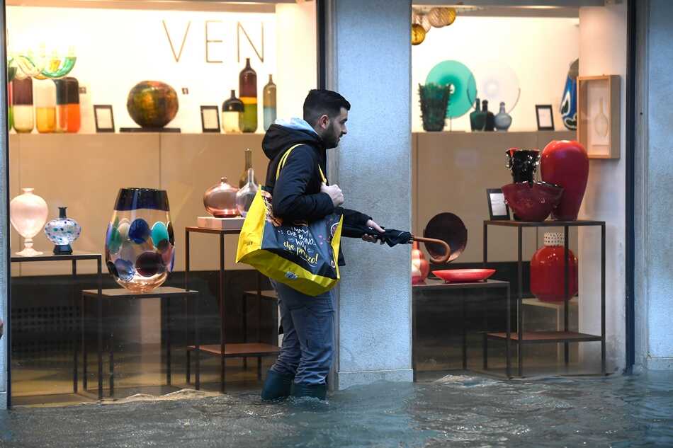 意大利著名的“水上之都”威尼斯本周遭遇到50多年一遇的大潮,洪水淹没了标志性的圣马可广场,85%的街道都被泡在了水下。 “这座城市正危在旦夕。”威尼斯市长布鲁尼亚罗(Luigi Brugnaro)13日宣布,这个世界知名水乡进入“紧急状态”,并警告此次洪水可能产生严重损失。“我们现正面临超越预期的涨潮,威尼斯市已动员各单位紧急处理,并正式向意大利政府求助。”他说道。 布鲁尼亚罗将这次异常的洪水归咎于气候变化,称此次洪水将给这座城市“留下永久的伤疤”。 据《联合早报》14日报道,当地时间12日上午,威尼斯水位峰值达到127厘米,接近警戒水位;到了晚上10时50分,水位峰值已达187厘米,仅低于1966年创下的纪录高位194厘米。 据美国公共广播电台报道,位于威尼斯地势最低地点之一的圣马可广场水深超一米。圣马可教堂的地下室被洪水淹没,管理委员会的一位成员告诉意大利安莎新闻社,最让人担心的是洪水可能会损坏大教堂的支撑柱。 圣马可理事会成员坎波斯特里尼在接受采访时指出,在圣马可大教堂悠久历史中,洪水对教堂造成如此严重的影响仅见过五次,其中三次发生在过去20年,最近一次发生在2018年。 除了圣马可广场之外,洪水也侵袭了各处,强风和暴风雨下洪水淹没了海堤和码头,导致船只被推上了街道,使得许多游客需在水深及膝的街道涉水而行,不少遭大水入侵的商户及餐厅被迫暂停营业。为安全起见,各所学校及一些旅游景点也关门。 报道称,至少已有一起与洪水相关的死亡事件——一名78岁的男子因电线短路在家中触电身亡。 威尼斯的天气预报办公室说,尽管最严重的洪灾可能已经在13日过去了,但未来几天水位仍将保持在“非常高”的水平。