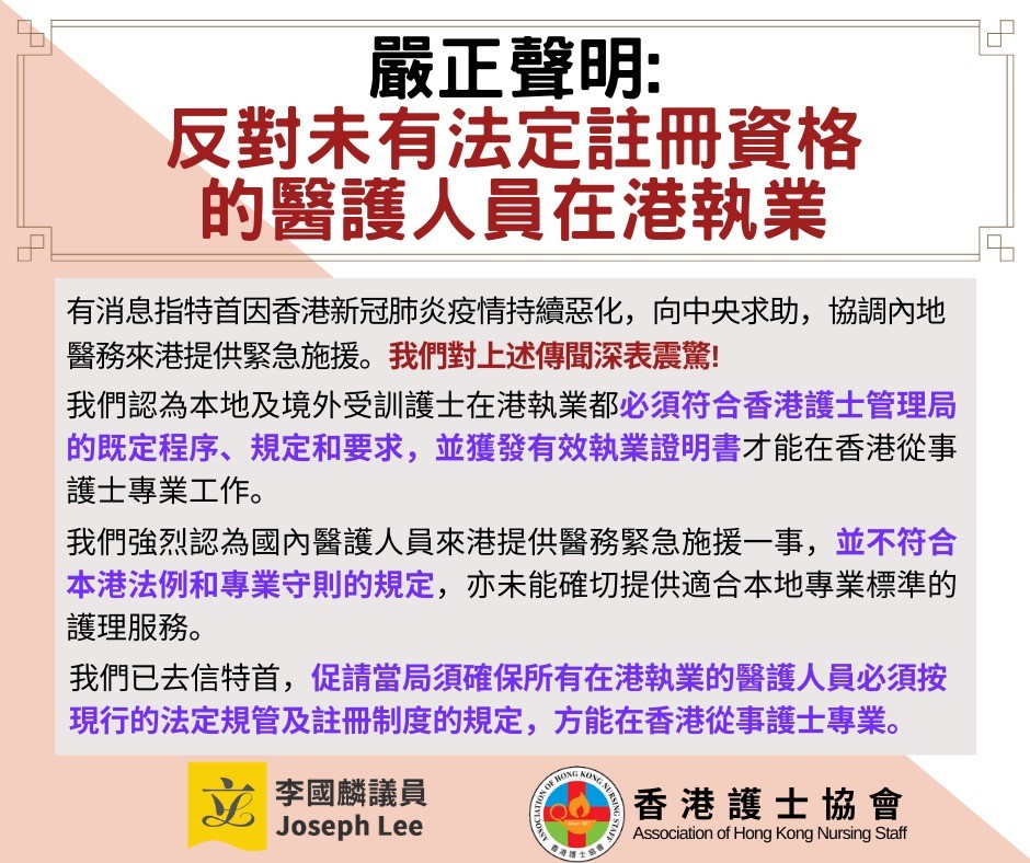 “橙新闻”报道,周六当天有记者问到是否需要内地医护来港支援,香港医院管理局总行政经理庾慧玲回答,目前最主要是病床不足,局方已减少非必要及非紧急服务,以腾出人手。若有需要会在社区治疗中心增加床位,目前主要调动局方的人手及服务。 被问到有政党与中联办官员会晤,请求中央协助香港抗疫一事,她称对于输入内地人员,自己暂时没有相关资料。 庾慧玲24日曾透露,截至当天中午,医管局开放649间负压病房,使用率79.5%;负压病床为1207张,使用率为76.4%。香港至24日共通报2372例新冠肺炎确诊病例,其中16人死亡。 香港商报21日报道称,特首林郑月娥已经向中央发出求助,如果香港疫情持续恶化,本地医务系统不堪重负,希望中央协调内地医务紧急驰援。当时香港多间医院的ICU病房使用量已接近100%,有的医院甚至一度只剩一张ICU病床,院方被迫将病情稳定的病人搬至其他医院。 国家卫建委24日表示,将应特区政府抗击疫情需求提供一切必要支持。 然而香港有医护团体却借机炒作,反对内地医护支援,理由竟包括“不符法例和专业守则”,以及本地医护使用英语,担心使用普通话及简体字的内地医护来港后造成“混乱”。 香港医学会会董陈以诚日前也宣称,有关研究显示医管局目前住院率不足一半,并无人手不足情况,不需要内地医护支援。 对此,香港医学会前副会长林哲玄在接受文汇报采访时反驳,“过去十年八载,从未听过医管局人手足够”。目前部分专科人手确实充足,但不代表全部都可调往应付刻下的疫情。 他表示,内地有不少重症病、传染病科及呼吸道科的专才。就算目前未急到要立即求助,但随着疫情发展,要内地专才增援也属合理,不应“拒于千里之外”, 香港工联会医疗人员总工会副主席冯权国也表示,如今是非常时期,应以救人为首要考虑。若香港确诊个案继续上升,本地人手不足以应付,国家从内地派医护来港协助,应该庆幸。“他们是来救人而非抢饭碗的。”他批评个别团体及医护人员只顾自身利益,言论狭隘及没有良知。 特首林郑月娥25日也在社交媒体上表示,中央一直十分关心香港的疫情变化和支持特区政府的防疫抗疫工作,从最早期调动口罩和其他防疫物资到港,协助滞留湖北港人和在外港人返港,到近日应她要求在加大检测能力和改装亚洲国际博览馆为类似“方舱医院”的工作上提供协助,充份体现对港人的关怀。 对于一些别有用心的人散播谣言,不断借机抹黑中央和破坏特区与中央的关系,林郑月娥形容实在令人气愤。