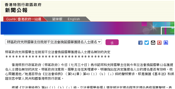 以下是港府新闻公报全文: 特区政府表示欧盟的措施属错误决定 香港特别行政区政府(特区政府)今日(七月二十九日)表示,欧洲联盟(欧盟)因应制定《中华人民共和国香港特别行政区维护国家安全法》(《香港国安法》)而公布的结论和措施属错误决定。 政府发言人表示:“特区政府呼吁欧盟成员国务实理性,避免采取损害香港与欧盟之间长久以来互惠关系的措施。” “我们重申,香港特别行政区是中华人民共和国不可分离的部分,是一个在‘一国两制’下享有高度自治权、直辖于中央人民政府的地方行政区域。” “特区的事务属我国的内部事务,任何其他国家都无权直接或间接干预该等内部事务。” “贯彻落实‘一国两制’方针切合香港市民的利益,满足维持香港繁荣稳定的需要,以及符合国家的根本利益。” “中央人民政府一再表明会坚定不移地落实‘一国两制’政策。” 政府发言人指出每个国家都有权利和义务维护其国家安全。 政府发言人续说:“国家安全属中央事权,香港特别行政区在过去23年未能履行其宪制责任,透过本地立法维护国家安全,因此制定《香港国安法》绝对是合宪、合法、合情、合理。” “《香港国安法》不会影响香港的高度自治、司法独立和法治,也不会影响香港市民的合法权益。” “该法针对的是极少数触犯《香港国安法》规定的四类严重危害国家安全罪的人,保护的是绝大多数市民的生命财产、基本权利和自由。” 就欧盟公布的具体措施,政府发言人表示:“欧盟以制定《香港国安法》为借口,拟向香港居民提供更宽松的庇护、移居和居留政策,是粗暴干涉香港事务,我们对此深表遗憾。”
