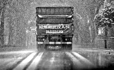2月15日,运送成都市成华区捐赠武汉消毒液的卡车在市区行驶供图/新华社