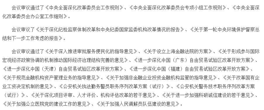 《新闻联播》大家看了没? 2月19日的头条是中央全面深化改革委员会第十八次会议,这也是牛年首个中央层面的会议。 2018年3月,党和国家机构改革方案明确,将中央全面深化改革领导小组改为“中央全面深化改革委员会”,其办事机构为中央深改办。 从2018年至今,中央深改委共召开了18次会议。每次会议,都透露了重要信号。 两个月左右开一次 政知君注意到,中央全面深化改革委员会的主任是习近平,副主任有李克强、王沪宁、韩正。 中央深改委首次会议召开的时间是在2018年3月28日,那次会议审议通过了《中央全面深化改革委员会工作规则》《中央全面深化改革委员会专项小组工作规则》《中央全面深化改革委员会办公室工作细则》。 政知君注意到,中央深改委约两个月左右开一次会。 其中,2018年共开了5次会议,2019年开了6次会议,2020年开了6次会议,2月19日的这次会议,是中央深改委2021年首次开会。 2018年开会时间:3月28日、5月11日、7月6日、9月20日、11月14日 2019年开会时间:1月23日、3月19日、5月29日、7月24日、9月9日、11月26日 2020年开会时间:2月14日、4月27日、6月30日、9月1日、11月2日、12月30日 2021年开会时间:2月19日 每年年初召开的中央深改委会议,都会审议通过前一年的工作总结报告,以及当年的工作要点。 比如,2019年1月的会议,审议通过了《中央全面深化改革委员会2019年工作要点》《中央全面深化改革委员会2018年工作总结报告》;2020年2月的会议审议通过了《中央全面深化改革委员会2019年工作总结报告》《中央全面深化改革委员会2020年工作要点》。 而这次的会议,则审议通过了《中央全面深化改革委员会2020年工作总结报告》《中央全面深化改革委员会2021年工作要点》。