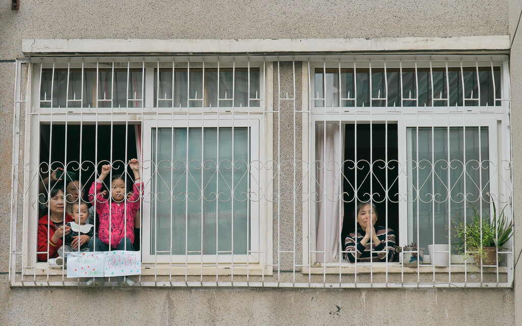 3月21日,湖北省武汉市洪山区虎泉街双唐小区,快递员把快递放到小区无接触投放点。