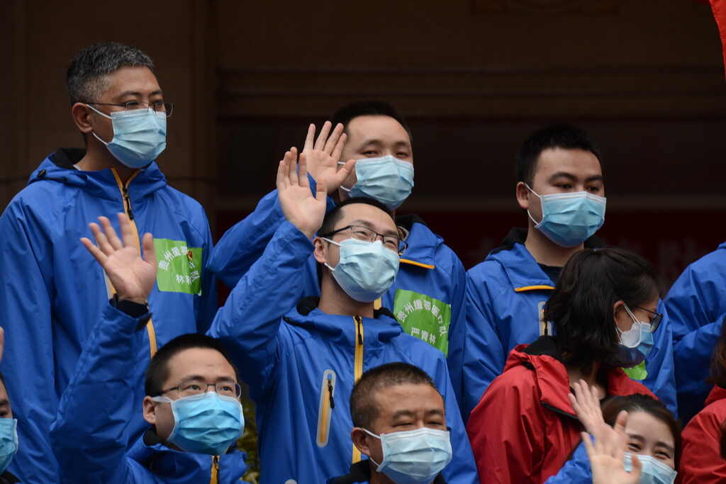 3月20日,湖北省武汉市洪山区珞喻路,中国邮政快递员在送货。