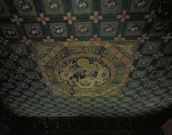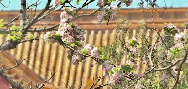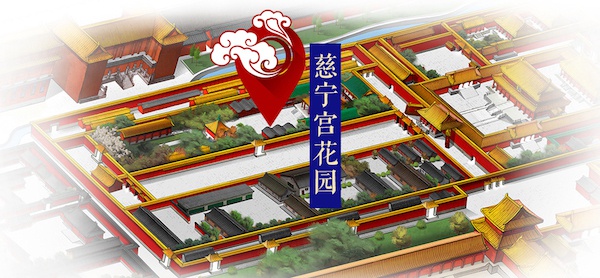 导览将重点放在春光烂漫的户外,在慈宁宫的南侧就是曾经安放九只小鹿的慈宁宫花园。故宫四座花园,慈宁宫位于第二,仅次于御花园,是太后太妃嫔休憩游赏念经礼佛的场所。 故宫里明清古树共计448棵,慈宁宫花园有34棵,古木奇树特别多,进门处的白皮松,三针一束,像银钗。院内有近三百年历史的粗壮的银杏树。银杏是古代皇家寺庙种的树,白果树,取成正果的寓意。银杏与皇帝有千丝万缕的联系,相传光武帝刘秀藏于银杏林得救。慈宁宫花园临溪亭侧面一棵唯一的树龄三百年以上的侧柏,是嘉靖时期留下的。 慈宁宫花园里的临溪亭很值得一看,该亭外侧环绕的溪水,是从金水河的北侧以驴车取水灌注其中的。 临溪亭有三个看点,天花有一个贴金盘龙藻井,一般是木头雕成穹庐状,藻井与水有相关的防火寓意。临溪亭藻井别具一格,不是凿成,是贴金彩绘绘制,有立体感。化验发现,明代末年就存在了,清代重修。该亭子中的方砖也与众不同,故宫大殿铺的是金砖,这里铺的造价与金砖相仿,甚至更加珍贵。这里的是天然石材花斑石,颜色丰富,为海底天然鹅卵石数亿年沉积形成,主要出产于河南浚县和江苏徐州。临溪亭的墙面四角是琉璃墙,有缠枝纹和宝相花,大背景是龟背纹。