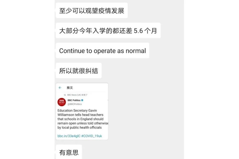3 半个月的时间,世界已经变得让人不认识了。 在美国罗切斯特,19岁的大一新生臧无尤本想去华人超市囤些饺子,却发现冰柜早已空了。剩下一袋菠萝味的儿童汤圆,他刚把手伸过去,身边一位大妈迅速把那包汤圆抢走,还不忘瞪他一眼。“那可是儿童汤圆啊!菠萝味儿的!”最后,他只抢到了几个捏成小猪模样的,豆沙馅面点。 美国人开始“成捆成捆”地囤卫生纸,超市的洗手液抢购一空,店家就把洗洁精摆出来,当洗手液卖。更让臧无尤恐慌的是,美国人开始囤枪了。“在美国,没枪真的不行。万一物资短缺,是会打起来的”。危机不再藏着掖着,而是正大光明地压在每个人头顶。 3月11日下午1点,臧无尤收到邮件,他所在的罗切斯特大学宣布停课。要知道,学校上一次停课,还是在二战的时候。他立即给父母打电话,商量买票的事。当时是北京时间凌晨一点多,他明白,如果留学生们都要等父母起床的话,五个小时之后,一定没票了。 意大利宣布封国当晚,留学圈里的中国留学生无人入眠。不管出于什么目的建的群,都变成了回国群。凌晨5点,林子雪发了条朋友圈,问有没有人要回国,不一会儿就收到了多条评论,全部是“有”,“要回”。 第二天早上八点,她给中国驻意大利大使馆打电话,想咨询罗马还有哪座机场能通行。但从早上8点到中午12点,电话一直处于忙线状态。最后,一位朋友打通了电话,获知菲乌米奇诺是唯一还在运营的机场。 机票价格上涨的速度是按秒计算的。林子雪打开订票APP时,那班中转阿布扎比的飞机只剩四张票,平日往返价四千左右的机票涨到单程五千。她想都没想,就点下支付。两小时后,航班价格再翻一倍,涨到单程一万。与此同时,留学生朋友圈里开始出现黄牛,尽管没人知道他们的票是从哪里搞到的。 比机票价格变动更大的是航班信息,航班取消是正常情况,按时起飞是天大的幸运。 尹雯抢到了16日从伦敦直飞上海的机票,等待回家的那几天,她发现大量的航班被取消,随着时间的临近,她越来越紧张。16日凌晨,她和同行的朋友包车去机场,行至中途,身边的男同学突然把她摇醒,说,他们这趟航班取消了。尹雯上手去打他,“都什么时候了还开这种玩笑!”男同学一脸无辜,打开手机一看,是真的。 抱着碰碰运气的心态,他们没调头回去,想先到机场问问能不能办理换机。幸运的是,二十分钟后,航班莫名其妙地恢复了。众人吓出一身冷汗。 更多的,是运气不好的人。有留学生的航班取消了三四次,退款根本没有着落,还在坚持抢票。一些购买俄航班机的留学生,登机时才被告知,俄罗斯临时调整政策,航空公司只运送本国人。机场工作人员撕掉了他们的登机牌,他们只能滞留机场。 现在,所有的留学生家长群,都成了临时撤退指挥部。家长们不眠不休,各司其职,动用自己所有人脉关系,给孩子们求机票。林子雪所在的家长群,已经改名为“罗马留学生包机回国群”。