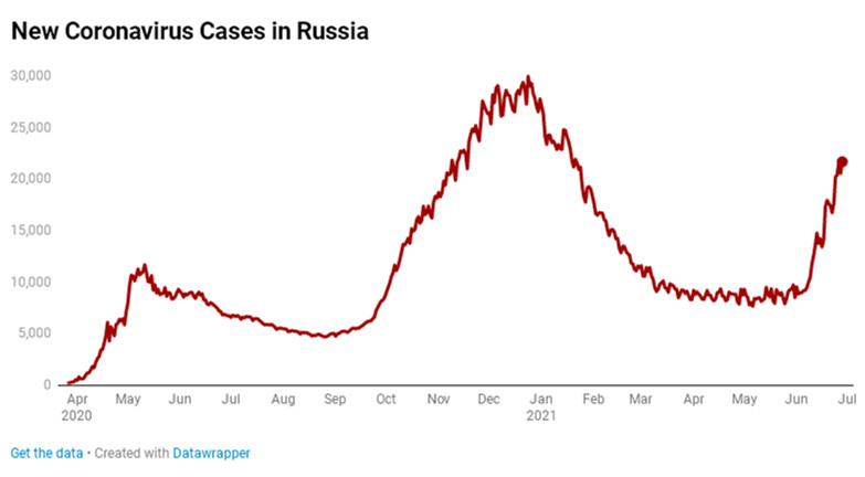 首都莫斯科依旧是俄罗斯疫情的“震中”。俄防疫指挥部的数据显示,过去24小时,莫斯科市新增新冠患者为6723例。莫斯科市长索比亚宁表示,从病毒基因测序来看,目前,莫斯科新增感染者中的90%均感染了德尔塔变异毒株。世界卫生组织(WHO)总干事谭德塞在此前的例行记者会上表示,最初由印度报告的德尔塔变异病毒是迄今为止所发现的“最具传染性的新冠病毒”,目前已在至少85个国家境内发现了这种变异病毒,且病毒正在未接种疫苗的群体中迅速传播。 对此,莫斯科市收紧防疫措施,定于28日重新实施居家办公等防疫措施,以遏制新冠变异病毒德尔塔毒株传播。根据新规,除已接种疫苗人群,莫斯科民众28日起必须居家办公;民众进入餐厅前必须提供相关二维码,以证明已接种疫苗,或新冠病毒检测阴性抑或半年内曾患新冠并且康复。 俄罗斯Smorodintsev流感研究所专家丹尼连科(Daria Danilenko)近日表示,目前已在俄罗斯检测到了一例“德尔塔+”变异毒株。“德尔塔+”变异毒株是从德尔塔毒株变异而来的,多了一个能引起免疫逃逸的突变。据美媒报道,通过基因测序手段测定,研究人员已经在美国、英国、印度、加拿大等11个国家发现了约200例“德尔塔+”变异毒株的感染者。 “这看起来像是输入病例,”丹尼连科说道,“不过仍需要密切关注。”目前,俄联邦消费者权益保护和公益监督局(Rospotrebnadzor)尚未公布“德尔塔+”变异病毒在俄罗斯传播的具体情况,仅表示在研究这一特殊的病例。
