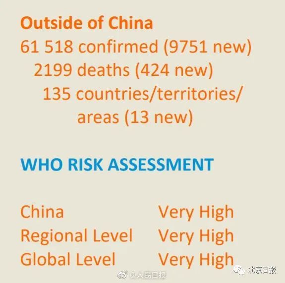 今早,特朗普检测呈阴性 给美国的疫情防控保住了“脸面” 然而“坏消息”依然不停传来: 西班牙首相妻子确诊 法国12名议员感染 意大利两副部级官员中招 中国以外确诊病例破6万 全球累计确诊病例突破15万 …… 新冠病毒还在不断攻城略地 中国以外确诊病例破6万 全球累计突破15万 世卫组织每日疫情报告显示,截至欧洲中部时间14日10时(北京时间14日17时),中国以外新冠肺炎确诊病例较前一日增加9751例,达到61518例;中国以外死亡病例较前一日增加424例,达到2199例。 据美国约翰斯·霍普金斯大学发布的实时统计数据,截至美国东部时间14日20时(北京时间15日8时),全球新冠肺炎累计病例数已突破15万例。 西班牙全国“封城”,首相妻子感染 据西班牙首相办公室消息,西班牙首相佩德罗·桑切斯的妻子贝戈尼娅确诊感染新冠病毒,目前首相夫妇身体状况良好。 西班牙首相桑切斯14日晚宣布,为遏制新冠肺炎疫情,从即日起15天内,在西班牙全国范围内实施“封城”措施,除工作、购置食品药物、就医及其他必需和紧急情况外,所有民众和私人车辆禁止外出。 同时,关闭全国除超市、药店、理发店等生活必需产品销售和服务外的公共场所。全国学校关闭,改为网络授课,减少客运交通运力等。 截至14日晚间,西班牙确诊病例升至6393例,死亡195例。 法国进入防疫工作最高阶段 关闭所有“非必需”公共场所 法国卫生部下属卫生总署署长热罗姆·萨洛蒙14日晚在巴黎举行的新闻发布会上表示,鉴于新冠肺炎疫情已在法国全境蔓延,法国进入防疫工作第三阶段,即最高阶段。 法国总理菲利普在同一新闻发布会上宣布,从当晚12时起关闭全国包括餐馆、酒吧、电影院等在内的所有“非必需”公共场所,直到新命令下达为止。但保障人们日常生活基本需求的场所将继续营业,如供应食品的商店、药店、银行、加油站等。他同时重申,第一轮市镇选举仍将按计划在15日举行。 另据法国媒体报道,截至14日,法国国民议会已有12名议员被确诊感染新冠病毒,另有6名工作人员也被确诊感染。 法国生态转型和团结部国务秘书布吕内·普瓦尔松的办公室14日确认,普瓦尔松新冠病毒检测结果呈阳性。这是法国第二位政府官员被确诊感染新冠肺炎。 此外,巴黎迪士尼乐园14日宣布,由于法国政府禁止超过100人的集会,该公园将从当晚起关闭。 据路透社报道,法国卫生部门最新消息称,截至当地时间14日,法国新增新冠肺炎确诊病例838例,累计确诊4499例。新增死亡12例,累计死亡91例。 意大利累计确诊破2万 两位副部级官员感染 根据当地时间3月14日18时意大利卫生部公布的最近数据,意大利现有新冠病毒患者17750例,死亡1441例,治愈1966例,累计确诊感染新冠病毒总人数为21157例,较3月13日18时新增3497例,新增175例死亡病例。 据意大利安莎社报道,意大利卫生部副部长西莱里14日测出新冠病毒呈阳性。同日,意大利教育、大学和科研部副部长阿斯卡尼也在社交媒体上宣布确诊感染新冠病毒。 伊朗累计确诊12729例 将进行生物防御演习 截至14日中午,伊朗新增新冠肺炎确诊病例1365例,累计确诊新冠肺炎病例12729例,其中4339例康复,611例死亡。伊朗专家会议成员、阿亚图拉哈希姆·巴特哈伊确诊感染新冠肺炎。 截至目前,伊朗共完成了对750万人健康状况的排查工作,其中175000人出现相关症状,441人已经住院治疗。从15日开始,伊朗陆军将进行生物防御演习,演习目的旨在防止新冠肺炎疫情暴发。 日本首次国内单日新增超过60人 累计确诊772例 据日本广播协会电视台报道,截至当地时间3月14日23时,日本当天新增62例新冠肺炎患者,累计确诊772例,累计死亡22人。 除“钻石公主”号邮轮外,日本首次单日新增新冠肺炎患者超过60人。 此外,日本首相安倍晋三在14日傍晚的记者会上表示,日本目前还没有达到宣布进入紧急事态的条件。 欧洲多国感染人数持续增加 多国升级管控措施 德国:累计确诊3795例。首都柏林和图林根州等地禁止举办50人以上的活动。 英国:累计确诊1140人。可能最早于下周开始禁止大型聚集活动。 挪威:累计确诊1046例。 瑞典:累计确诊961例。 捷克:累计确诊189例。14日—24日禁止境内商铺营业。 14日,在英国、德国一些超市,恐慌性抢购加剧。 墨西哥官员称拟考虑关闭美墨边境 “防止美国病毒传入” 据新华社,美国白宫总统医生14日说,特朗普新冠病毒检测结果呈阴性。(此前报道:特朗普新冠病毒检测结果出来了!) 据美国有线电视新闻网报道,截至美东时间3月14日下午,美国已经至少有新冠肺炎确诊病例2655例,其中包括死亡病例56例。美国目前49个地方州、华盛顿哥伦比亚特区以及海外领地都出现了确诊病例。 当地时间3月14日,墨西哥卫生官员表示,如果防疫需要,会考虑关闭美墨边境。目前墨西哥共有26个确诊病例,无死亡病例。墨西哥正考虑取消非必要的集会。此前特朗普曾表示,防止疫情从墨西哥传入美国是美国加强移民管控政策的原因之一。 墨西哥卫生官员对此回应”如果从技术角度谈控制疫情,我们该考虑的不是如何防止病毒从墨西哥传到美国。而是防止美国的病毒传到墨西哥。” 来源:北京日报(ID:Beijing_Daily)综合人民日报、新华社、央视新闻、海外网