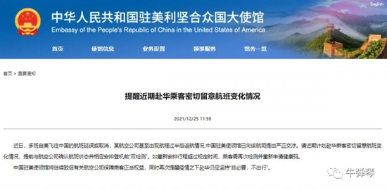 细节四,真相到底是什么? 就此问题,中国驻美大使馆答记者问就表示: 近日,多班自美国飞往中国的航班推迟或取消,美国航空在距离飞机起飞仅有数小时的情况下突然宣布取消航班,达美航空的航班甚至出现航程过半后返航情况,给中国籍乘客带来巨大损失。 我馆注意到,近期美国各航空公司人手紧缺问题突出,机组人员畏惧疫情下出勤情况时有发生,导致美国国内和国际航班大面积取消。 尤其注意这句话:人手紧缺问题突出、机组人员畏惧疫情下出勤。 不排除机组人员工作超时,不想飞;也不排除畏惧出勤,不想飞。 反正,就是不想飞,就是找借口。 甚至不惜航程过半,也调转机头返航。 诛心一点,不排除这些美国机组人员,就是自己想在美国过圣诞,但结果却是,把飞机上乘客都坑苦了。 据报道,飞机上很多是中国的留学生,他们这个时间点回国,考虑到必要的隔离时间,赶的是回国过年、家人团聚。很可能,因为达美的幺蛾子,这个新年团聚,就泡汤了。 更糟糕的是,他们又被送回了美国,其中一些人签证已过期,美国工作人员则在圣诞休假中,不少乘客可能面临“非法入境”的尴尬局面。 他们不得不再次购票,还面临核酸等一系列麻烦的程序。 最最糟糕的,一些中国留学生可能已经退掉了公寓,如果短时间又买不到机票,那真是在美国“无家可归”了。