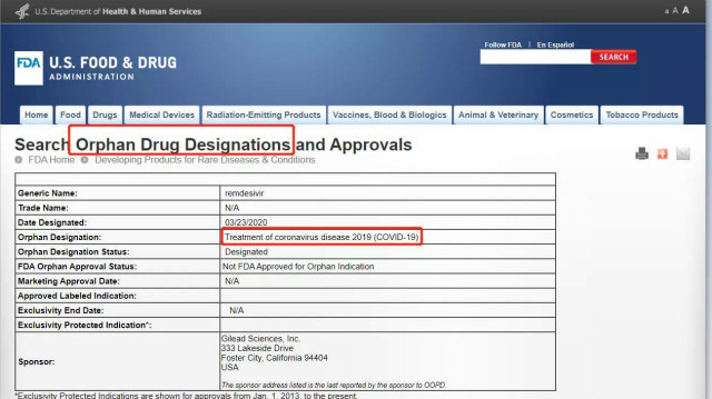 “人民的希望”瑞德西韦在美获批,但却是戴着“孤儿药”的标签。 北京时间3月24日,美国食品和药品管理局(FDA)官网数据库显示,吉利德科学(Gilead Sciences)公司开发的在研抗病毒疗法瑞德西韦(remdesivir)获批孤儿药资格(Orphan Drug Designation),其适应症为冠状病毒疾病2019(COVID-19)。 什么是孤儿药?孤儿药本是指一些专门用于治愈或治疗/控制罕见病的药物。罕见疾病的定义是在美国是患病人数小于20万人(或发病人口比例000)的疾病。 通常,罕见病药物的研发成本高昂、上市之后价格也高昂,但企业回报却未必丰厚。因而在追求利润和投资回报的情况下,医药企业不倾向于针对适用症或者适用病患过少的罕见疾病进行研发。为了鼓励对被忽视的罕见病治疗用药研发,1983年开始美国FDA给针对孤儿症的研究项目提供绿色通道,加速审批的过程。 同时,孤儿药身份可以为制药公司提供在该是适应症上为期7年的市场独占期(exclusivity),即7年内任何药厂不得仿制该药物用于在获批适应症领域进行治疗。此外,在药物开发过程中,制药企业还能够获得与合格临床测试相关的税务抵免,以及递交新药申请时特定费用的减免等其它优惠。 在重大疫情面前,吉利德科学公司开发的瑞德西韦被认为是“扼住新型冠状病毒咽喉”的新希望,因而让这个处于研究阶段、尚未完成全部临床的药物成为备受瞩目的焦点。 3月23日,吉利德科学发布声明称,由于新型冠状病毒在欧洲和美国的传播,最近几周里紧急获取瑞德西韦的个人同情使用(compassionate use)请求“呈指数级增长”,这已经“淹没”了吉利德的紧急治疗准入系统。 为了简化紧急获取的流程,吉利德目前正在从个人的同情用药请求过渡到扩展使用项目。吉利德称这种方法既可以加快重症患者获得使用瑞德西韦的速度,又可以收集所有参与患者的数据。 吉利德表示,在此过渡期间,由于过去几天的大量用药需求,无法接受新的个人同情用药请求。但已确诊的孕妇和18岁以下儿童除外。吉利德将专注于处理先前批准的请求,并在预期时间内启动扩展使用项目。 值得注意的是,当前吉利德公司正在进展6项临床试验,检验瑞德西韦治疗不同类型的COVID-19患者的疗效。其中,在中国进行的两项临床试验有望在4月获得结果。