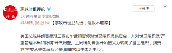 美国有线电视新闻网(CNN)评论说,特朗普宣布这一消息之际,世界正处于数十年来最严重的传染病大流行之中,他愤怒地回应美国媒体对其抗疫不力的指责。美国媒体最近纷纷质疑,特朗普是对疫情危机轻描淡写,还是忽视了疫情严重性的相关警告。在这样的质疑声中,特朗普试图把责任推到其他地方,包括世界卫生组织和新闻媒体。特朗普决定停止资助世界卫生组织,遵循的是对国际组织的一种怀疑模式,这早在新冠病毒大流行之前就开始了。特朗普质疑美国对联合国提供的资金,退出全球气候协议,并痛斥世界贸易组织,声称所有这些机制都是在剥削美国。 美国参议院外交关系委员会委员、来自康涅狄格州的民主党参议员墨菲14日说,特朗普正在试图转移自身责任。他说:“现在白宫和他们的盟友正在努力寻找替罪羊,为总统在疫情早期阶段犯下的致命错误开脱。” 此前,特朗普多次指责世卫组织。7日,他在白宫疫情简报会上批评世卫组织“对危机反应迟缓”,称该组织“以中国为中心”,并威胁暂停向该组织缴纳会费。 8日,特朗普继续指责世卫组织,称正在考虑取消对世卫组织的资金支持。美国国务卿蓬佩奥也指责世卫组织未尽责。 9日,美国国务院发言人称,世卫组织“又一次将政治凌驾于公共卫生之上”,美国对此深感不安。 对此,世卫组织总干事谭德塞回应称:“请不要把这种(新冠)病毒政治化。”