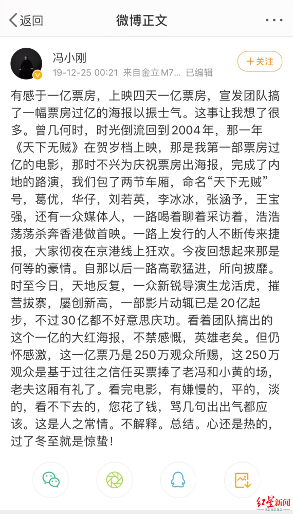 东阳美拉于2015年年9月2日成立,注册资本仅500万元,同样也是一家有明星导演冯小刚占99%股权,陆国强占1%。在成立仅仅2个月后,华谊兄弟于11月如法炮制溢价收购案,以10.5亿元人民币收购东阳美拉的70%股权,为他们明星IP布局再添一员大将。收购案完成后,东阳美拉成为华谊兄弟子公司,由华谊兄弟持有70%股权,冯小刚则持有另外30%股权,陆国强则退出公司。 根据当年双方《股权转让协议》中注明,冯小刚需保证每年创造利润在1亿元以上,且逐年递增15%,即2016-2020年每年税后净利润分别为1亿元、1.15亿元、1.32亿元、1.52亿元和1.75亿元。若未能完成要求,冯小刚需同意于该年度的审计报告出具之日起30个工作日内补足目标公司未完成的该年度业绩目标之差额部分。在此前买下成立仅1天的浩瀚影视交易中,华谊兄弟也提出了类似的对赌协议,这是当年华谊兄弟收购案中惯用手法。 2016年和2017年,东阳美拉分别实现净利润1.05亿元和1.17亿元,均完成对赌。但在2018年,因低于业绩承诺1.32亿元,冯小刚就赔付了华谊兄弟6700万元。那年,正当冯小刚为新片《手机2》做宣传时,片中第一女主角范冰冰因涉及阴阳合同案件,被寄予厚望《手机2》至今未能上映,而《手机2》出品公司华谊兄弟和东阳美拉,最后该年度净利润仅为6500万元。 2019年,东阳美拉凭《只有芸知道》和《火王》以1.64亿元净利润完成对赌目标,避免连续两年都赔款的惨况。但在2020年受到新冠疫情影响,冯小刚作为中国内地“贺岁片之父”,没有一部电影上映,仅有560万净利润,创下公司成立以来以来的新低,远低于业绩承诺,所以需赔付1.68亿元。