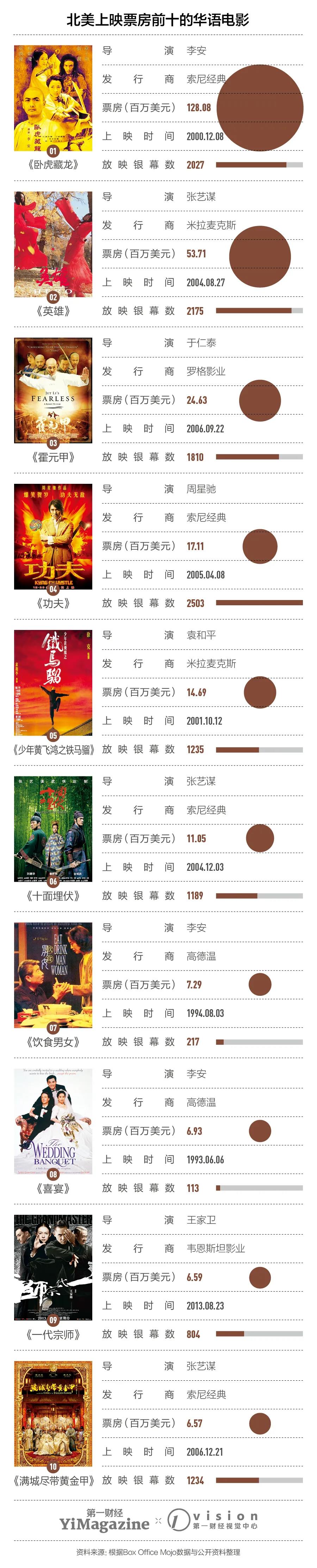 偏科严重到这种程度的,不止《八佰》,还有另一个冠军。4年前,中国影史票房冠军《战狼2》进入全球电影票房Top 100,其票房结构同样极不均衡——来自中国内地市场的票房收入也占其全球总票房的99%以上。 两个都是国内大赢家,去了海外却变失意者,难道近10年的国产电影大繁荣只是自high?“其实在2019年之前,国产片的北美票房是往上走的,市场也在做大,一年能发三四十部,但增长势头随着新冠暴发戛然而止。连好莱坞自己都受影响,更不用说外语片这个非主流板块了。”华狮电影发行公司版权经理安博对《第一财经》YiMagazine表示。 疫情肯定影响了票房,但疫情并不是主因。《八佰》的海外发行由华人影业在北美和澳新同步展开,而且在这两个地区的合作院线的市占率都高达80%,但最终票房都未突破40万美元。而上映时间与《八佰》仅相隔一周的《信条》,在北美的票房为5800万美元。 必须承认的事实是,最近几年,国产电影在海外的发行表现一直堪忧。但在新世纪的第一个十年,将中国大片卖到海外去一度是个好生意。2002年上映的《英雄》,全球票房中海外收入的占比超过了80%,2004年《十面埋伏》的海外收入占比更是接近9成。