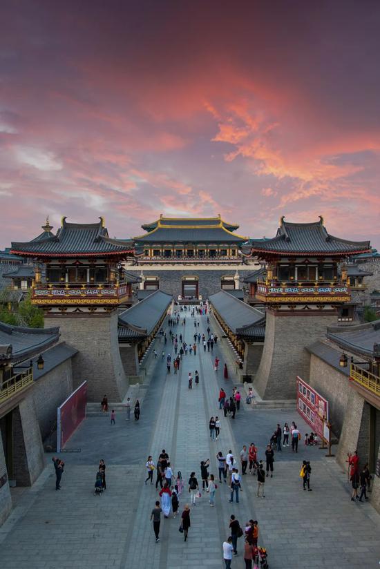 那时的襄阳,名流云集、冠盖相望,不乏庞德公、庞统、黄承彦、祢衡、宋忠这样的人杰,而真正影响中国历史并妇孺皆知的,则是住在城西的诸葛亮(一说在今南阳市,东汉末年,襄阳与南阳俱为荆州管辖)。求贤若渴的刘备三顾茅庐,诸葛亮也在古隆中提出了“三分天下”的宏图。自此,三国故事开始。 翻开《三国演义》,耳熟能详的马跃檀溪、水淹七军、刮骨疗毒等小说情节都发生在襄阳。而在真实的历史中,曹魏攻夺襄阳,打开了汉江平原的门户;关羽兵败襄阳,蜀汉“跨有荆、益”成为泡影;孙吴未得襄阳,困守东南成为定局。襄阳是三国鼎立的始点,也是三国故事的转折点,而三国,也成了襄阳历史上最辉煌壮美的画卷。 襄阳再一次被世人广知,便是金庸笔下的那场“襄阳之战”。小说是虚构的,但历史却是真实的——蒙古灭亡南宋,最激烈的战事就发生在襄阳,这座“天下第一城”在蒙古铁骑的重重包围之下,硬是坚守了整整6年。 1273年,襄阳失守,宋王朝一下子就散了元气,汉江平原门户大开。3年之后,蒙古铁骑踏上了临安城头。又3年后,陆秀夫背着小皇帝在崖山跳海,10万士民投水殉国,宋朝灭亡。 大开大合的历史,只是在襄阳城头留下影子的云烟,时间的风一吹,刀光剑影与血雨腥风都飘散了。而襄阳,依旧繁华。 在襄阳的街头巷尾多走两步,资深影迷就会发现,襄阳还藏着一些似曾相识的场景。比如:曾拍过《妖猫传》的唐城影视基地,也是前段时间热映电影《花木兰》的取景地之一。这个影视基地,同时也是国家AAAA级旅游区,除引入汉江水营造“八水绕长安”的格局外,还将孟浩然等唐代文人在襄阳的足迹“复活”……