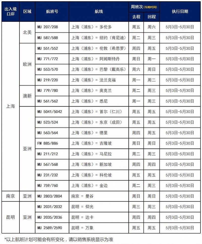 三大航司5月国际航班计划全部公布,“五个一”政策将延续一个月