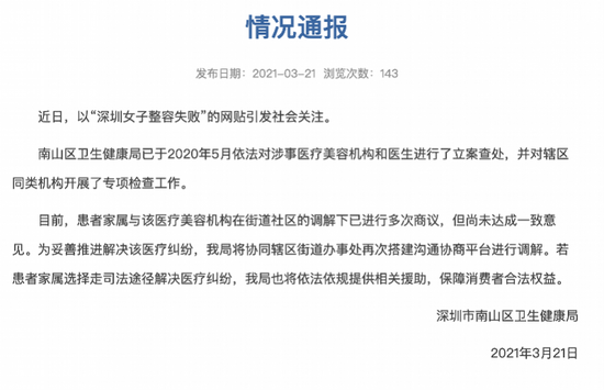 六级伤残! 整形机构已被处罚 经过鉴定,这起整形事故导致小丽的身体出现六级伤残。 关于这起整形事故的原因,小丽的父亲说:“事发后我们了解到,这家整形机构的麻醉师和医生都没有相关资质,也没有备案,好好一个孩子就让他们给毁了,我现在只想让整形机构给我一个说法,好好的一个人就因为一个小手术变成这样,他们毁了孩子的一生。” 2020年7月,就在这家整形机构同样发生过一起类似的事件。黄女士当时花了7万块钱去做隆胸手术,就在黄女士做完手术后却发现自己已经住进了医院的重症监护室。 医院的诊断结果同样为呼吸心跳骤停,经过治疗,黄女士的心肺都出现不同程度的损伤。黄女士认为是机构麻醉药的注射出现了问题。 3月16日,记者跟着小丽的父亲再次来到这家美容整形机构,试图了解为何麻醉事故会不止一次发生在这里,但工作人员的态度却让人感到惊讶。 面对记者,机构负责人拒绝接受任何采访,记者等待一个多小时后终于见到了负责人,但对方表示,关于麻醉师和医生是否有资质可以去卫监所查,她不会接受任何采访。 随后,记者联系到南山区卫监所稽查科,稽查科负责人称,事发后他们第一时间介入调查,整形机构证照合格。当时小丽先做的是眼睑修复,医生对其做局部麻醉时小丽心脏骤停,整形机构也进行了抢救,但抢救记录不规范。当时给小丽做手术的两名医生有行医资质,但其中一名医生是外国医生,虽然有证照,但未通过我国美容主诊医生备案。 稽查科负责人称,结合这家整形机构的这两次事故,他们已于今年1月对该机构进行了处罚:罚款两万,停业一个月;当事医生罚款五千,停业六个月。 稽查科负责人表示,对涉事机构的处理是依法依规的,如果受害者家属对处罚有异议,可以向上级部门反映。他还建议小丽的家属去做事故鉴定明确责任,这样更有利于协商赔偿问题。