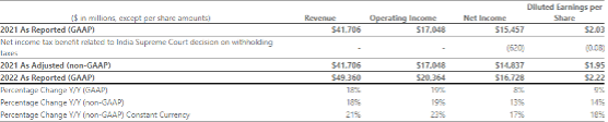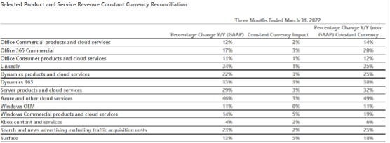 2.核心产品和服务:toB业务保持高速增长 - Office商用产品和云服务营收同比增长12%,按固定汇率计算同比增长14%。 - Office 365商用产品营收同比增长17%,按固定汇率计算同比增长20%。 - Office消费产品和云服务营收同比增长11%,按固定汇率计算同比增长12%。 - LinkedIn营收同比增长34%,按固定汇率计算同比增长35%。 - Dynamics产品和服务营收同比增长22%,按固定汇率计算同比增长25%。 - Dynamics 365营收同比增长29%,按固定汇率计算同比增长32%。 - 服务器产品和云服务营收同比增长29%,按固定汇率计算同比增长32%。 - Azure和其他云服务营收同比增长46%,按固定汇率计算同比增长49%。 - Windows OEM营收同比增长11%,按固定汇率计算同比增长11%。 - Windows商用产品和云服务营收同比增长14%,按固定汇率计算同比增长19%。 - Xbox内容和服务营收同比增长4%,按固定汇率计算同比增长6%。 - 搜索广告营收同比增长23%,按固定汇率计算同比增长25%。 - Surface营收同比增长13%,按固定汇率计算同比增长18%%。