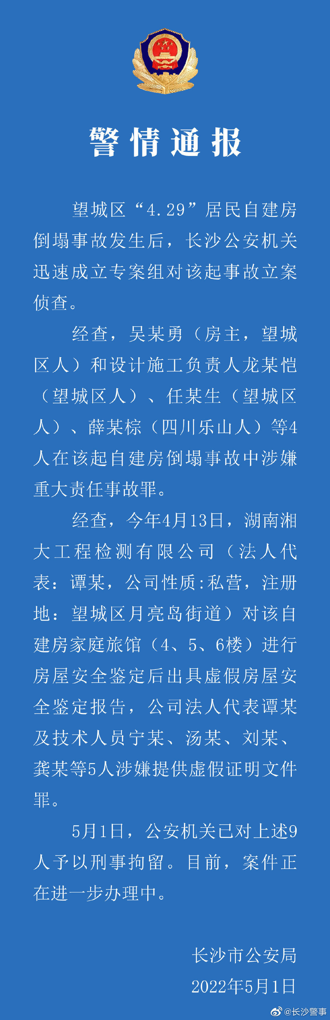 湖南长沙居民自建房倒塌事故初核23人被困39人失联