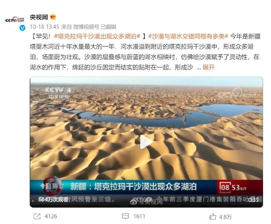 专家:沙漠中长期出现绿洲概率不大