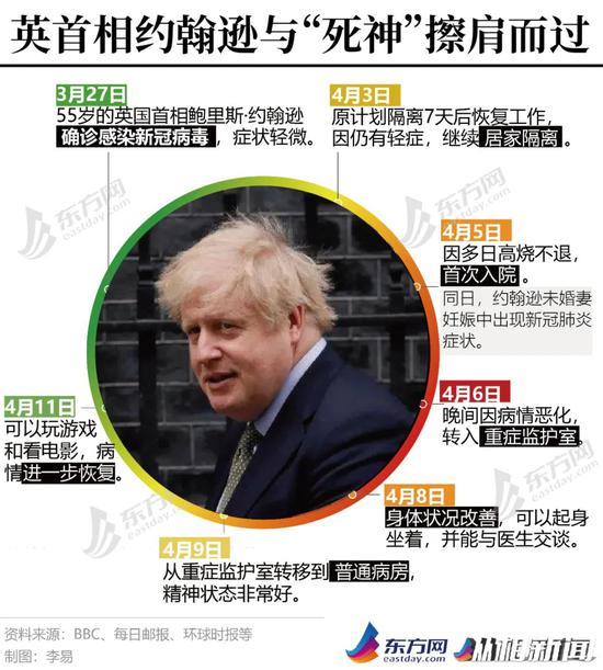 约翰逊进入ICU意味着什么? 当地时间3月27日,约翰逊证实,因为出现咳嗽、发烧等症状他接受了新冠病毒检测,结果呈阳性。 随后,约翰逊在唐宁街11号进行了为期7天的自我隔离。4月3日,7天隔离结束,但由于仍有发烧症状,约翰逊表示自己将继续进行隔离,直至症状消失。 4月5日,由于持续出现新冠肺炎症状,包括咳嗽和发烧等,约翰逊被送往圣托马斯医院。其医生称,这只是“预防性举措”。 4月6日晚7点,约翰逊被转入重症监护室,以防他需要呼吸机治疗。当天稍早,约翰逊还通过社交媒体推特表示,他被送医只是要进行一些“常规检测”,“我的精神状态很好”。