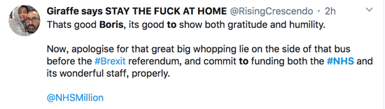 于此同时,英国一线NHS医护人员也确实急缺防护物资。目前已有19名医护人员因感染新冠死亡。甚至有医护人员透露,他们被要求禁止公开表达对物资短缺的担忧,否则将受到纪律处分、停职等处罚。 英国赫特福德郡一名护士称,在新冠病毒患者病房工作,只能得到一个外科口罩和塑料围裙,没有覆盖全身的防护服,感到极度的不安全。 鲍里斯确诊以来,英国女王已多次发表讲话,安抚民心。 11日晚,93岁的伊丽莎白二世首度发表复活节致辞鼓励民众,并表示“新冠病毒无法击败我们”,“光明终会战胜黑暗”。女王表示,“我们如同过去一样需要复活节”,但需要保持适当的距离。 这是女王首次在复活节发表讲话,也是她一周内第二次向公众讲话。
