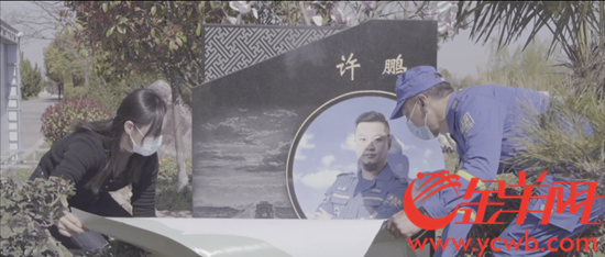 许鹏的碑坐落在他的故乡,江苏盐城。此时春色渐浓,草长莺飞。因为身处前线,蔡超与队友无法如期参加立碑仪式,委托驻守在盐城的队员参加。