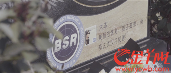 碑面的设计很显心意,从佛山专门订制的许鹏陶瓷烤像,眼神明亮坚定,神采奕奕,一如往昔,碑面背景是刻有“武汉加油”四个字的高速路,许鹏的朋友圈上那句感动了无数人的话“孩子要乖,爸爸去武汉打怪兽”,也被刻在碑面上。