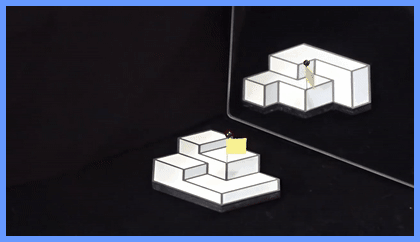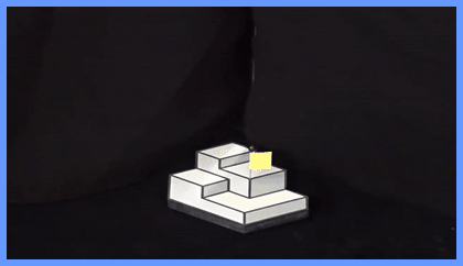 在2018年的年度最佳幻觉大赛中,  他也凭此绝技获得冠军,  成为当之无愧的“视错觉之王”  下面这个2018年的获奖作品  看上去只是一面黄色的旗  插在阶梯的矩阵结构物体上  ▽