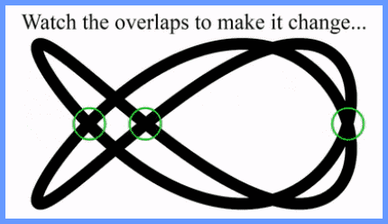 来揭晓一下,想要看出不同的变化,  需要观察图形运动时黑线之间产生的焦点  随着你的视觉追踪的焦点不同  图形运动的方向也就会改变