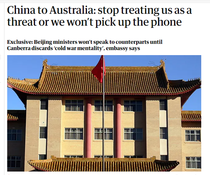 英国《卫报》在11月21日一篇题目为《中国告知澳方:停止视中国为威胁,否则不接电话》的报道中称,中国正敦促莫里森当局就将中国视作“威胁”还是“机遇”做出明确决定,而这一决定是重启部长级会谈的关键先决条件。 中国驻澳大利亚大使馆一名高级官员告诉《卫报》,除非澳大利亚停止将中国视为战略威胁,否则中国部长不会接听澳大利亚部长同僚的电话。 这名外交官员告诉《卫报》,尽管目前还没有迹象表明两国之间存在严重的外交分歧,但他对澳大利亚政府表示,澳方应考虑如何“遏制双边关系的恶化”,并为谈判创造更好的气氛。 在采访中,这名官员再次重申“责任全在澳方”,他说:“当然,你可以说一个巴掌拍不响( it takes two people to tango),但你看现在这个问题完全归咎于澳方。” 这名官员表示,澳方应该摒弃“冷战思维”:“核心问题是,我们认为冷战思维应该被摒弃,中国应该视为机遇,而不是威胁。否则双方无法走向正轨。” 当被问及“如果你把中国当敌人,那中国就会变成敌人。”这句话的意思时,这位驻澳大使馆官员解释道:“如果你与一个国家对抗,为什么这个国家要对你友好?” 目前,中澳部长级会谈处于冻结状态,我方部长拒绝接听澳方部长的电话。澳大利亚ABC新闻当地时间5月18日声称,在正式征收反倾销税前夕,商务部部长钟山“没有接听”澳大利亚贸易、旅游和发展部长西蒙·伯明翰的电话,也没有“给出拒接原因”。 对此,我外交部发言人赵立坚回应称:“我想,如果澳大利亚贸易部长希望同中方联系的话,他应该通过正常的外交渠道去联系。” 《卫报》的采访也证实,我方部长自5月份开始,一直没有接听澳方的电话。 不过,中澳方面还保持着其他联络。中国外交官定期与澳大利亚外交和贸易部官员举行交谈,澳大利亚驻华外交官也会与中国外交部的进行交谈。 《卫报》澳大利亚贸易部长西蒙·伯明翰抱怨称,数月来,他一直无法中方贸易部长直接通话,与中方讨论与价值数十亿美元的澳大利亚出口商品有关的一系列行动。 澳大利亚总理莫里森和他的部长们一再表示,关于澳大利亚推动“成熟、明智的对话”,主动权在中国政府的手上。目前,澳大利亚方面仍然试图与中方部长通话协商,澳大利亚外交部长也频发“善意信号”,表示愿意对话解决问题。 澳大利亚外交部的一名发言人21日告诉《卫报》,澳大利亚当局“一直准备以建设性的方式就中澳关系,双方分歧等问题进行直接对话”。 伯明翰和澳大利亚财政部长乔希·弗莱登伯格本周也再次重申,对话将是解决任何分歧的“最佳方式”。 澳大利亚外交贸易部副部长克里斯托弗·兰格曼11月13日也表示,澳大利亚希望,干扰对华贸易的“技术性”问题能尽快得到解决。 尽管澳外交部、商贸部“自以为是”的释放善意,但澳大利亚当局和澳大利亚总理莫里森继续在诸多涉及中国核心利益的反华议题上“兴风作浪”。 17日,莫里森前往日本,与日本首相菅义伟签署新的防务协议。莫里森一边表示“澳大利亚和日本不将中国视为战略竞争对手”,一边和日本首相菅义伟发表的联合声明,声称对中国在南中国海的行动表示“严重关切”,对香港“日益恶化的局势”表示“严重关切”。 随后在18日,美国、澳大利亚、加拿大、新西兰和英国政府周三就香港问题发表联合声明,重申对中国采用新的规则来取消香港民选议员资格的严重关切。 面对在涉及中国核心利益问题上屡屡主动发起挑衅抗的澳大利亚,中国驻澳大使馆近日将一份列有14项中澳争议的中国政府官方文件发给了澳媒。 一名中国官员在文件中表示:“如果你把中国当敌人,那中国就会变成敌人。” 但18日莫里森还傲慢回应说:“如果拥有媒体自由、被选举出来的议员因发表意见备受关注、以及类似的在人权问题上同加拿大、新西兰、英国和其他国家一同发表看法是导致中澳关系紧张的原因,那么,中澳关系紧张的实质其实是澳大利亚能够坚持自我。” 对于中澳关系急剧下滑并陷入困难的原因,我外交部发言人赵立坚曾指出,回顾过去几年的中澳关系,澳大利亚国内一些人固守冷战思维和意识形态偏见,更多地视中国发展为威胁,并随之采取了一系列涉华错误言行,这才是导致中澳关系急剧下滑并陷入困难局面的根本原因。