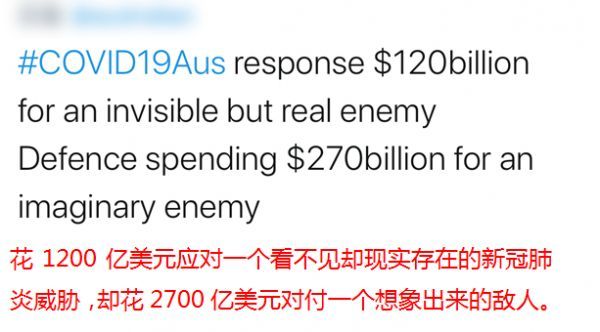 美国主导,澳媒配合,一起完成了一幕污蔑中国的双簧。 看清了这层关系,谭主也专门去研究了一下在澳大利亚频繁散播“中国威胁论”的始作俑者——澳大利亚战略和政策研究所,发现这家智库的资金来源同样有美国的影子。 该研究所的年度报告显示,其主要的捐助者就是美国的军火商,如洛克希德•马丁等。另外,根据“外国影响力透明度计划”的披露,北约、美国国务院、英国外交部也都是该智库的幕后金主。 利益交叠,乐见摩擦。这家机构一直在“制造”各种涉华事件,2019年热炒的“中国间谍”潜逃澳大利亚的谣言正是该机构炮制。 该研究所在获得美国国务院约27万美元的资助后,也开始追踪中国和澳大利亚高校间的合作研究,丑化和诋毁相关研究成果。反华,成了美澳之间的一门生意。 虽然一些澳大利亚政客觉得自己找了个好东家,但美国这棵“大树”真的可靠吗? 美国是澳大利亚的解药吗? 因为疫情影响,澳大利亚连续29年的经济增长在今年开始中断。根据澳大利亚央行发布的数据,今年上半年GDP预计下降10%。5月份,澳大利亚的失业率也达到7.1% ,为2001年以来的最高水平,这意味国内就业市场将减少近23万个就业岗位。 5月份,惠誉把澳大利亚现有的主权信用评级展望从“稳定”下调至“负面”,让澳大利亚成为了当时唯一被美国两家主流评级机构下调评级展望至负面的国家。 所谓评级机构下调主权信用评级展望,就是机构不看好这一主权国家未来的偿债能力,对应的可能性就是,未来,澳大利亚现有的AAA主权信用评级可能会被下调至AA+,甚至更低。 这意味着,在澳大利亚最需要钱的时候,美国公司公开“差评”了澳大利亚政府的还债能力。这种行为对澳经济而言,无疑是落井下石,雪上加霜。 显然,澳大利亚并没有认清谁与自己的利益更攸关。 •美国与澳大利亚的年度贸易额只有700亿美元,而中国跟澳大利亚贸易额是1589.7亿美元。 •中国吸纳了澳大利亚近三分之一(32.6%)的货物和服务出口,美国只有5.3%。
