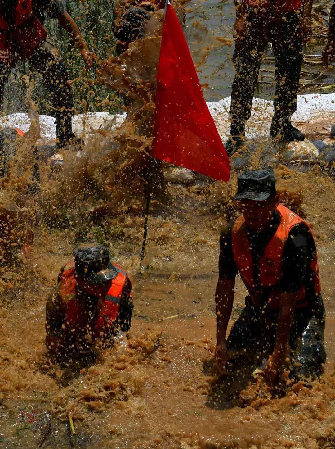 在龙口村村民李进的记忆中,这是他46年来遇到的第三次大水。1983年那次他还不到10岁,记得连着下了好久的雨,1998年那场洪水他刚好在浙江瑞安打工,直到今年又与洪水正面相遇。 事实上,这条位于饶河下游左岸、鄱阳湖东北岸的圩堤,因受饶河洪水及长江洪水的双重影响,且圩区内地势低洼,洪涝灾害频发。1983年与1998年的洪水曾两次致使莲北圩漫顶溃堤。 1998年洪水之后,莲北圩堤便被列为单退圩堤——鄱阳湖处于低水位时,堤内可供村民种养农作物或养鱼,高水位时圩堤则开闸行洪用作蓄洪,有助于降低鄱阳湖水位。 “鄱阳湖水位到了21.79米,莲北圩堤滚水坝就会自动滚水泄洪。”李昌青介绍。 7月9日,鄱阳县启动防汛1级应急响应,鄱阳湖外湖水位在7月9日已经达到21.65米。作为单退圩堤的莲北圩堤,滚水坝高度为21.79米,根据当地水文监测和县防通知,不出10小时,滚水坝将自动溢水进莲湖乡境内。 在行洪之前,邹家村村组长邹道喜便两头忙。龙口村的三个自然村中,邹家村处于龙口村的最西边,与鄱阳湖最为紧邻。相较于龙口村的其他两个自然村,邹家村的形势也更为紧迫。 邹家村还是抗洪队伍通向莲北圩堤的必经之地。但洪水不仅淹没了村里的主干道,还淹没了村里通往莲北圩堤的道路。 ▲邹家村是龙口村三个自然村中受灾最严重的村庄,村民邹道喜在讲述洪水进村的场面。新京报记者 杜雯雯 摄 邹道喜一边开着铁皮船将抗洪队伍送上圩堤,一边还要抢修村里被水淹没的重要出入口。他叫上妻子、堂兄弟还有其他村民,忙活整两天,用沙包在村口筑起了一米高的水中通路。 7月10日,莲北圩堤滚水坝泄洪首日,水声轰鸣,鄱阳湖水经过滚水坝流入莲北圩堤内湖——处于龙口村两侧、且水位高度为13米左右的大鸣湖、小鸣湖。 “按照当时的预估,三天之内(莲北圩堤内外湖)水位会流平”。开闸行洪,帮助缓解洪水的严峻形势,同时也意味着圩堤内的万亩农田将被淹没。行洪之前,龙口村在8日开始转移村民,“参照1998年的洪水淹没线,对当年淹没线之下的低洼处居民进行转移。”李昌青说。 7月10日,根据江西省防汛抗旱指挥部《关于切实做好单退圩堤运用的通知》(赣汛电〔2020〕19号)文件精神,单退圩堤在达到进洪水位的条件下,必须进洪,不得以任何理由阻拦进洪,各级防指也不应组织人员进行抢险等具体要求。 “我们每一步都是有预案的”,李昌青说,“按照乡镇安排,如果莲北圩决口,只抗洪,不抢险”。
